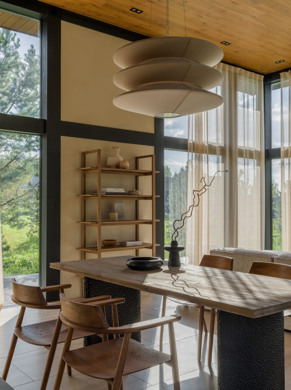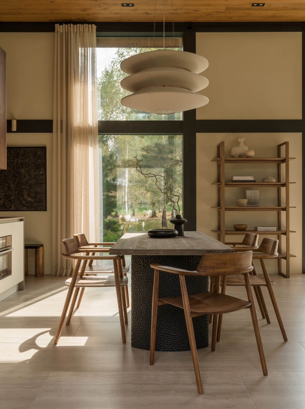 Архитектура сразу же задала тон и интерьеру: тёплому, природному, дышащему спокойствием. Здесь чувствуется отголосок восточной философии — что-то между ваби-саби с его любовью к несовершенству и джапанди с его лаконизмом.
