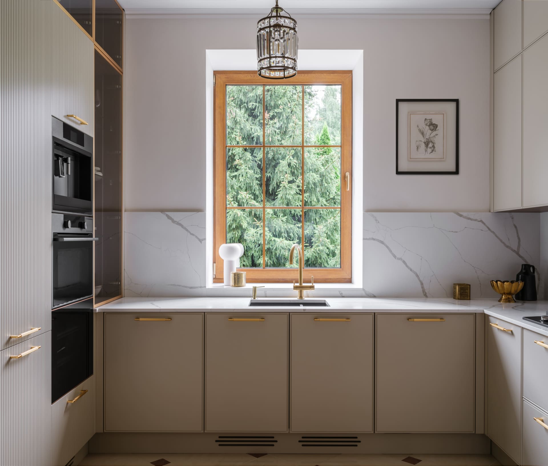 Дизайнеру хотелось сохранить ощущение воздуха и простора – для этого мойку перенесли под окно
