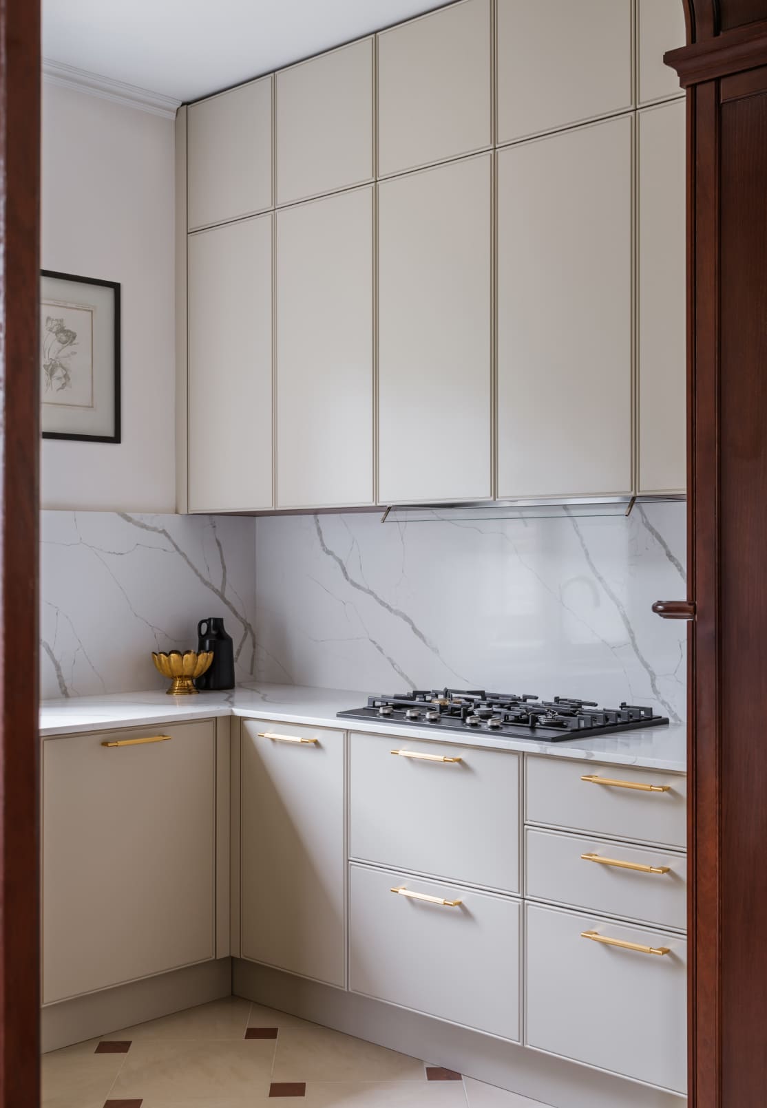 Алла отдала предпочтение кухне Brutal22 от Dantone Home в минималистичной стилистике c элементами джапанди. Фасады выполнены в матовой эмали: её благородный цвет «Царь грибов» разработан эксклюзивно для бренда колористом Дарьей Гейлер.