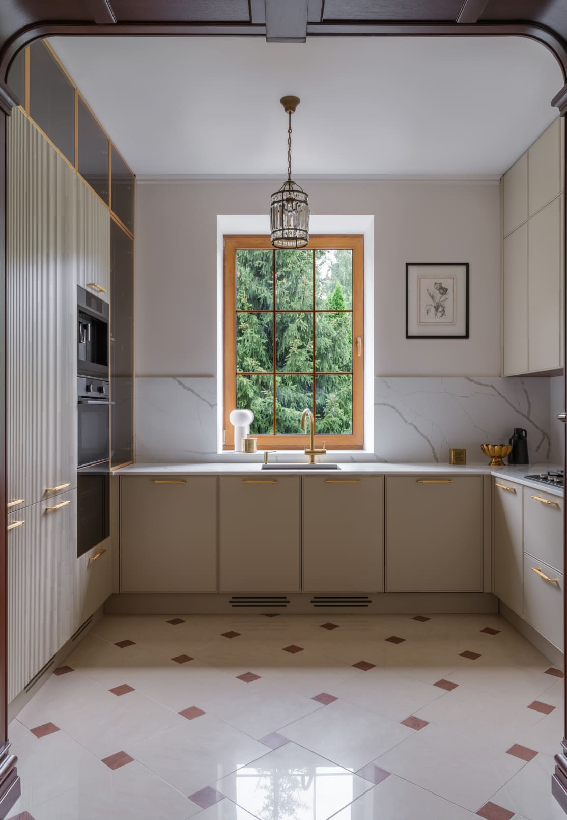 Владелица дома любит готовить, у неё много посуды и специального оборудования, упрощающего кулинарные эксперименты. Именно поэтому кухню было важно сделать максимально функциональной и вместительной.