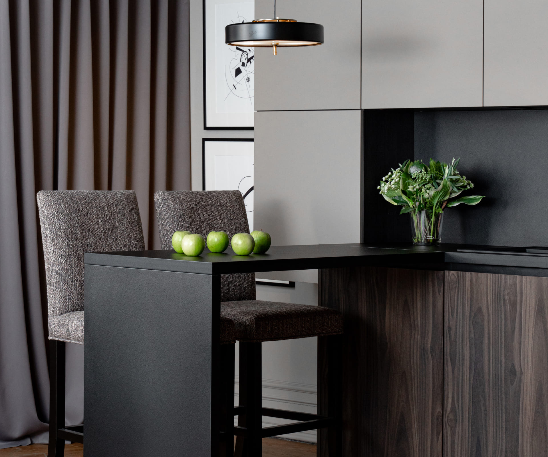 Отсутствие сложных деталей адаптирует коллекцию Basic под большинство современных интерьеров, где кухня и гостиная гармонично объединяются в open space.