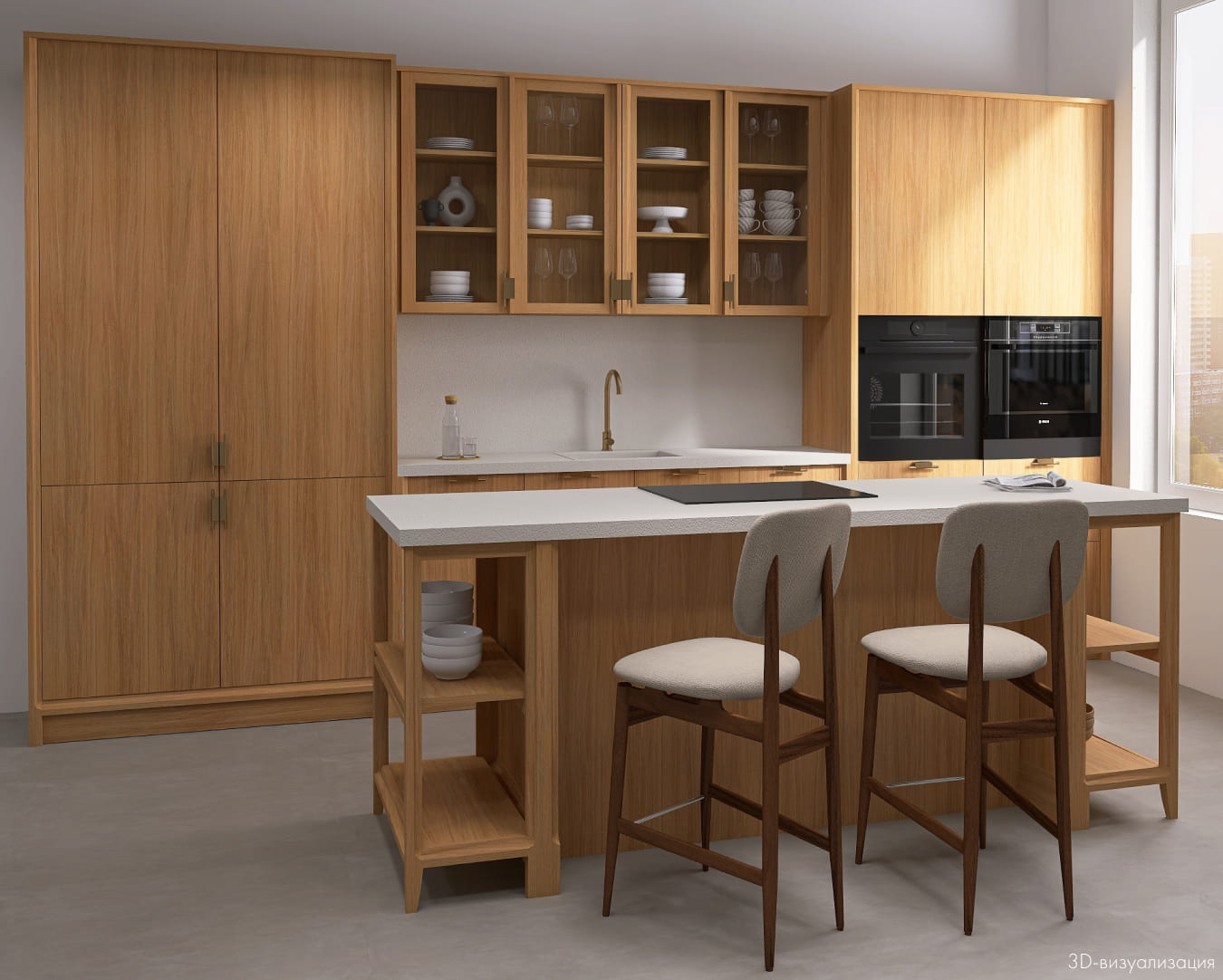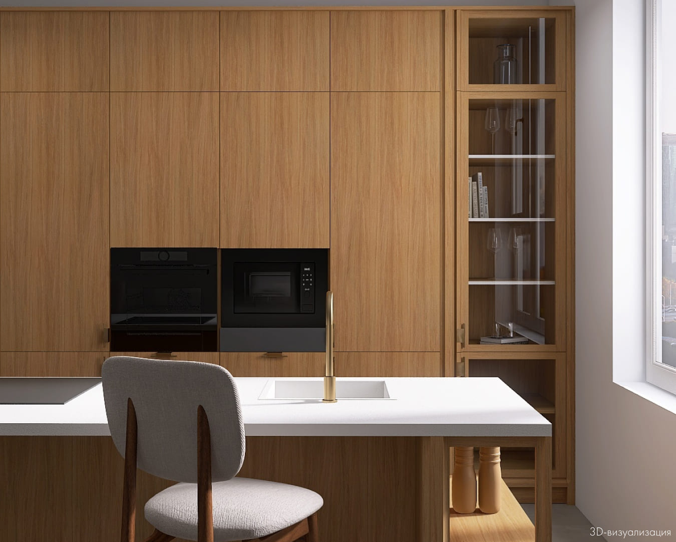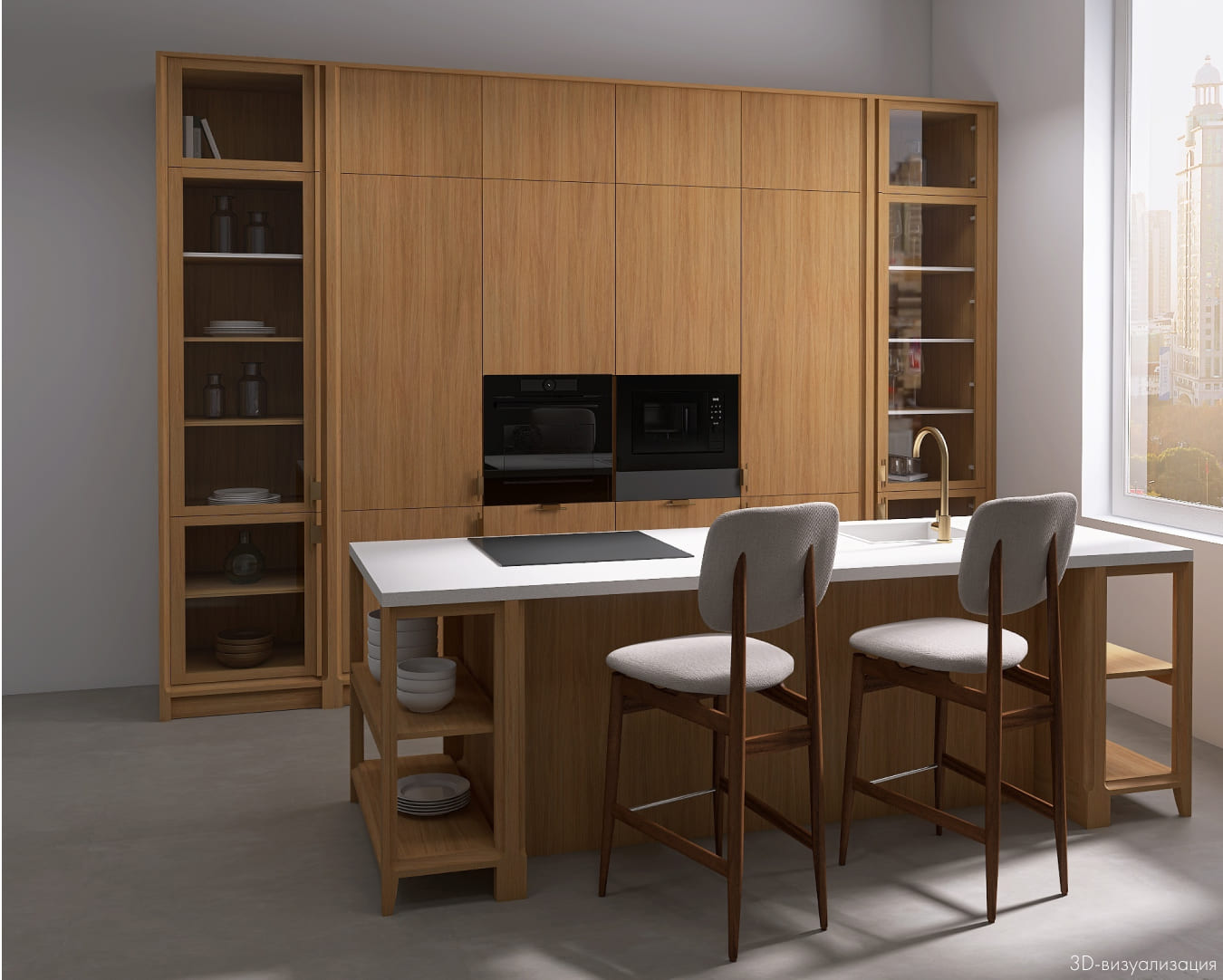 Дизайнерам будет гораздо проще интегрировать корпусную мебель в свои проекты, поскольку мы расширили возможности конфигурации: помимо традиционных линейных модулей в линейке с недавних пор представлены угловые нижние и верхние шкафы, а также колонны, которые можно дополнить угловыми механизмами. Это позволяет создать L-образную кухню — такая конфигурация гарнитура очень востребована, поскольку позволяет распорядиться пространством максимально рационально.
