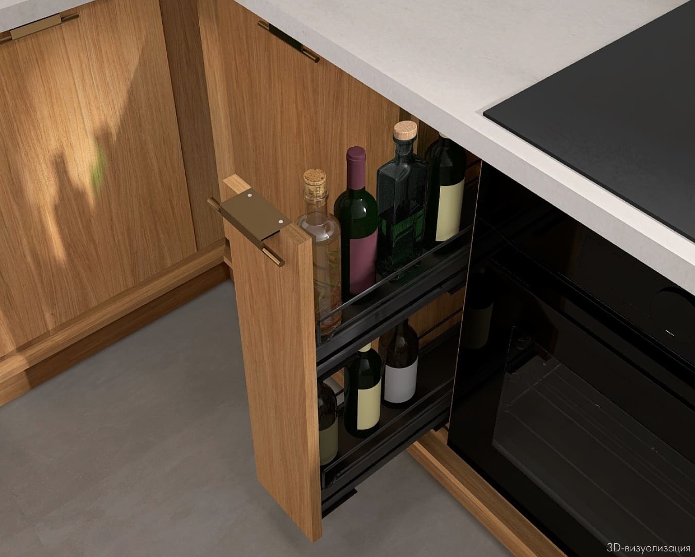 Для внутреннего наполнения нижних шкафов тоже появилась новая опция: в них можно интегрировать бутылочницы.