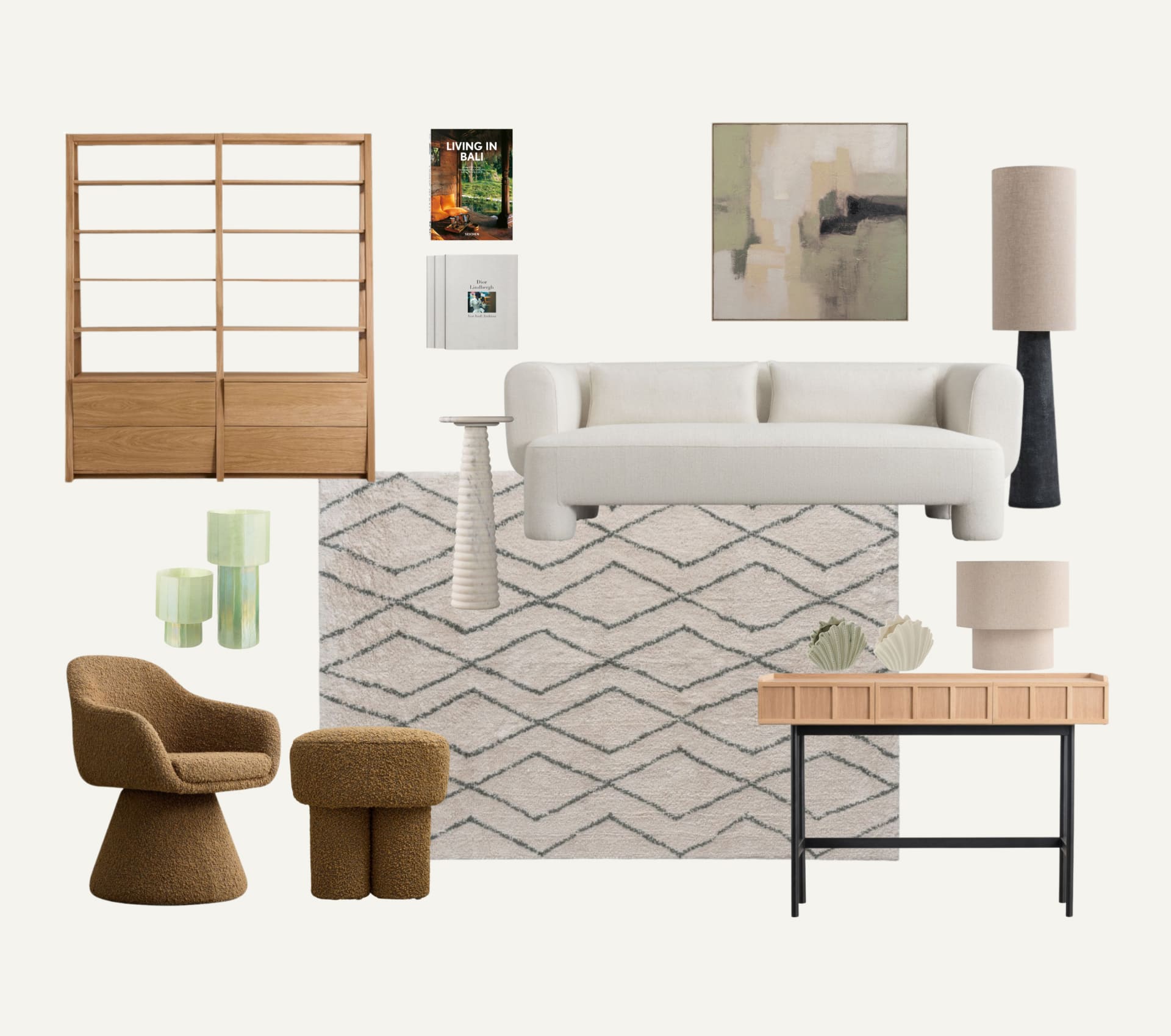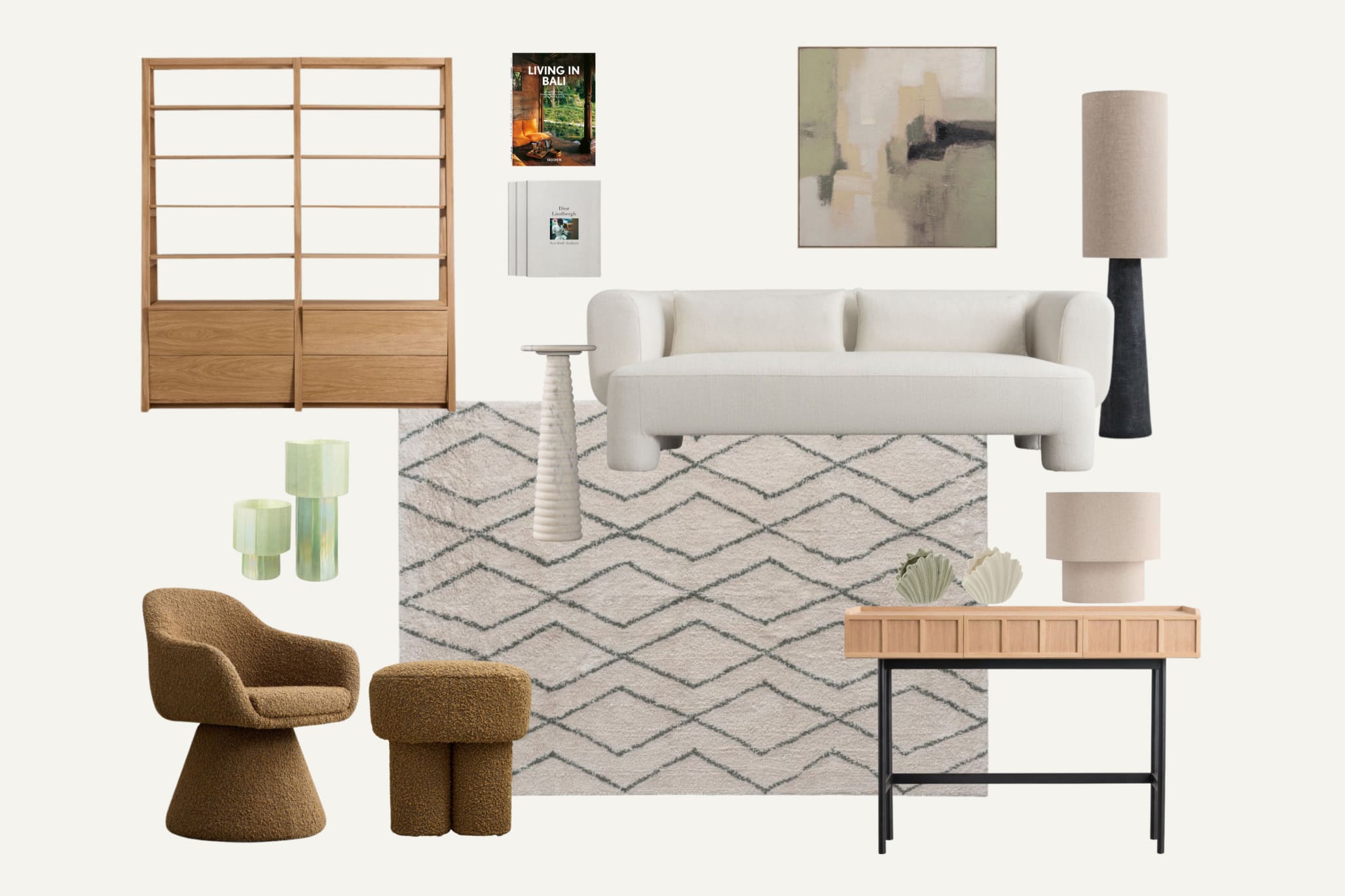 Природная палитра звучит приглушённо: тёплый песок, та особая прозрачная зелень, что пропускает свет, — оттенок, найденный в листве напротив солнца. На книжном стеллаже «Фрейм» соседствуют «Жизнь на Бали» — ода спонтанности и «Питер Линдберг. Диор» — манифест выверенной эстетики. Торшер «Ария» мягко подсвечивает постер с абстракцией «Атлас», а скульптурная белая ваза «Мэй» стоит как арт-объект, не требующий цветов.