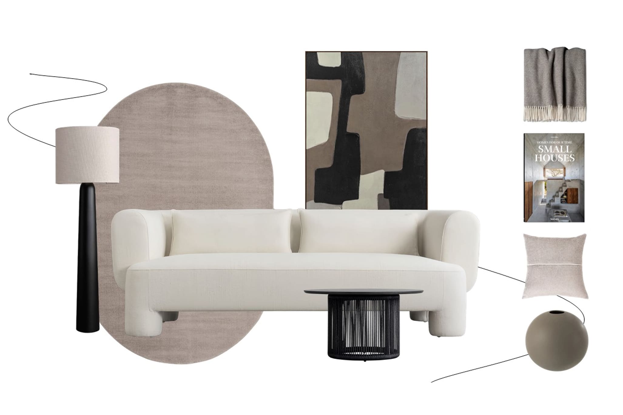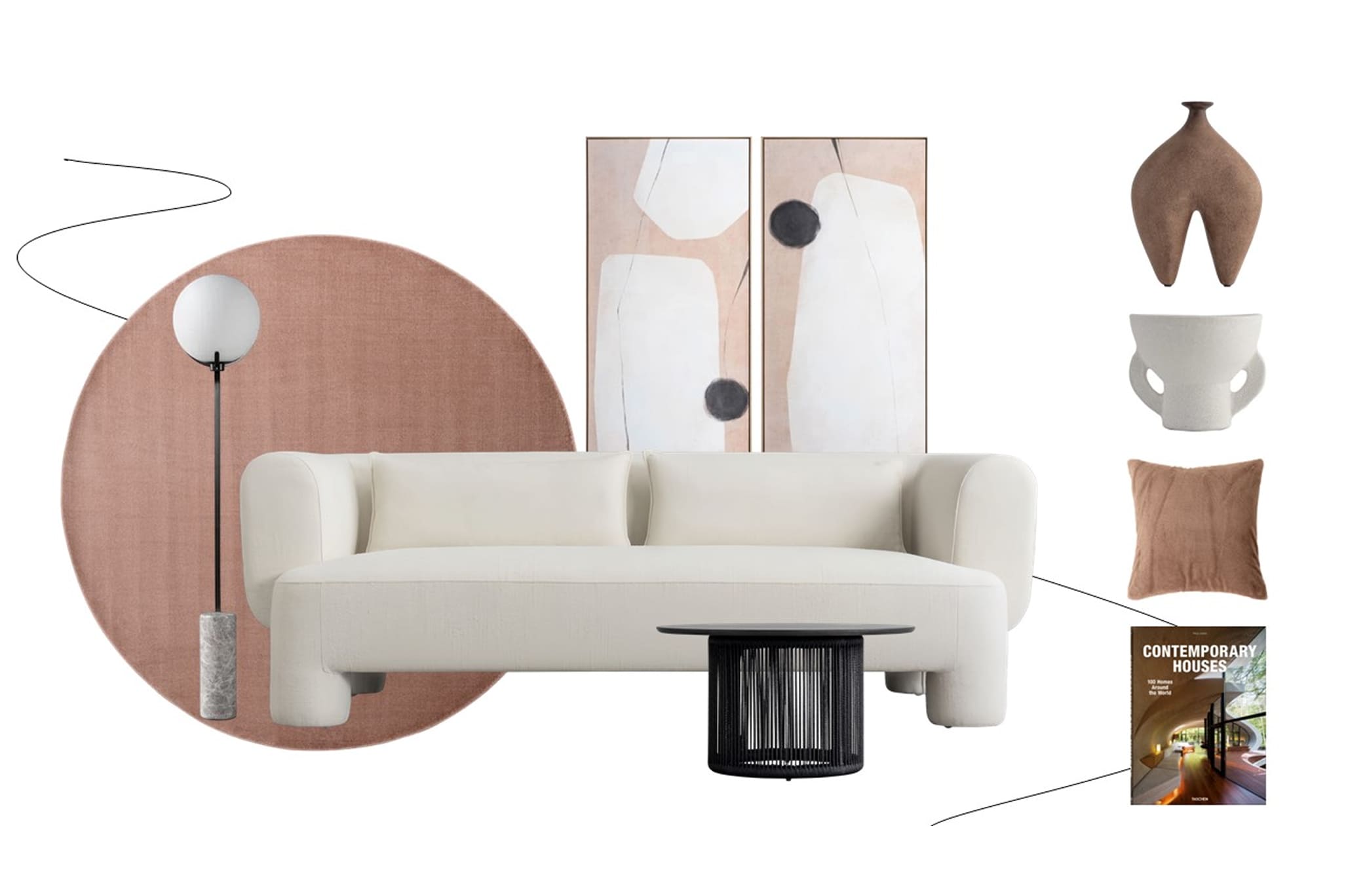 В гостиной это ощущение передаётся через плавные линии, скруглённые формы и тёплую палитру. Округлые силуэты мебели, приглушённые цвета, тактильные поверхности — всё здесь дышит размеренностью и умиротворением. Интерьер, лишённый резкости, мягко обволакивает, приглашая замедлиться и прочувствовать ценность каждого момента.
