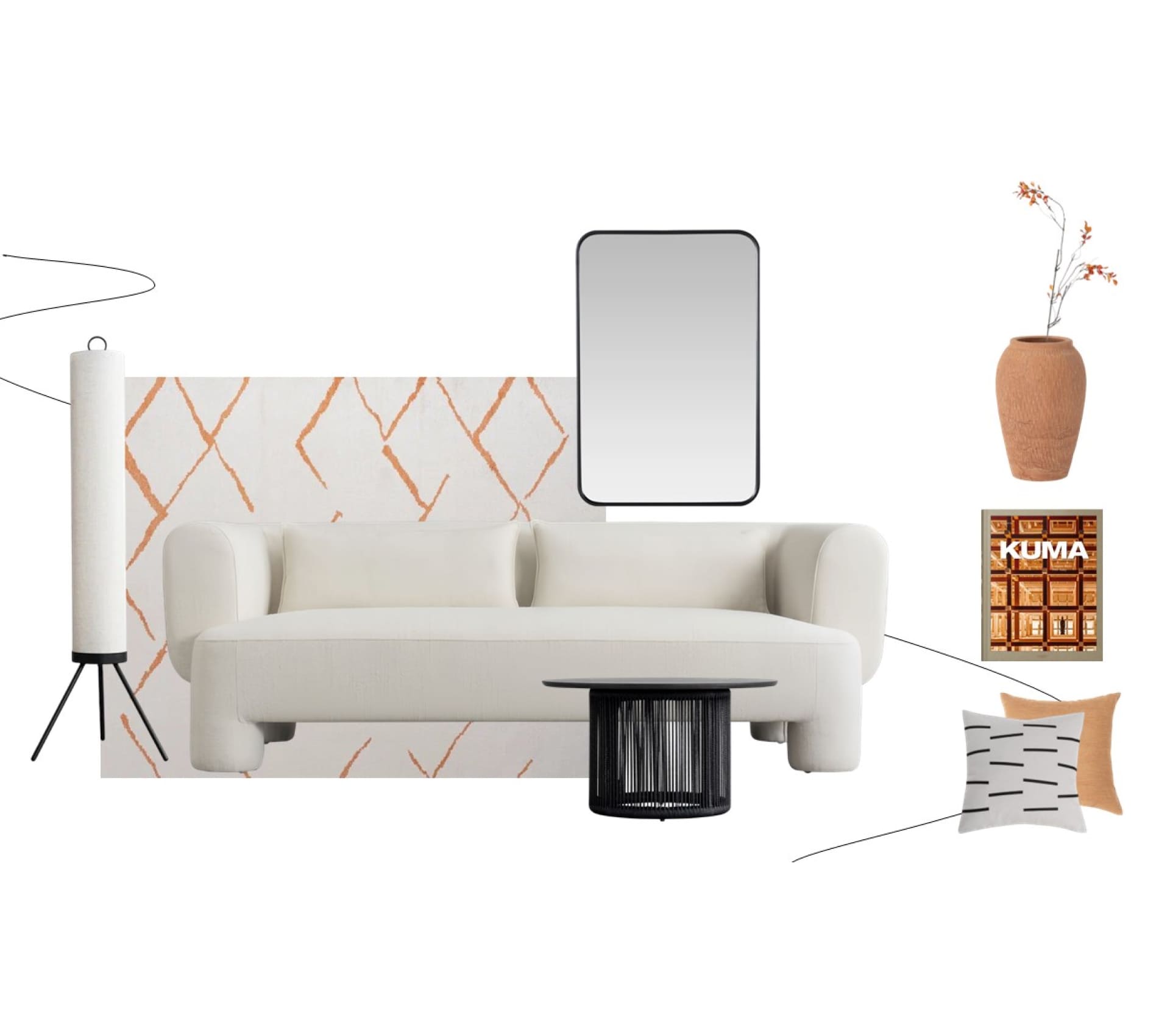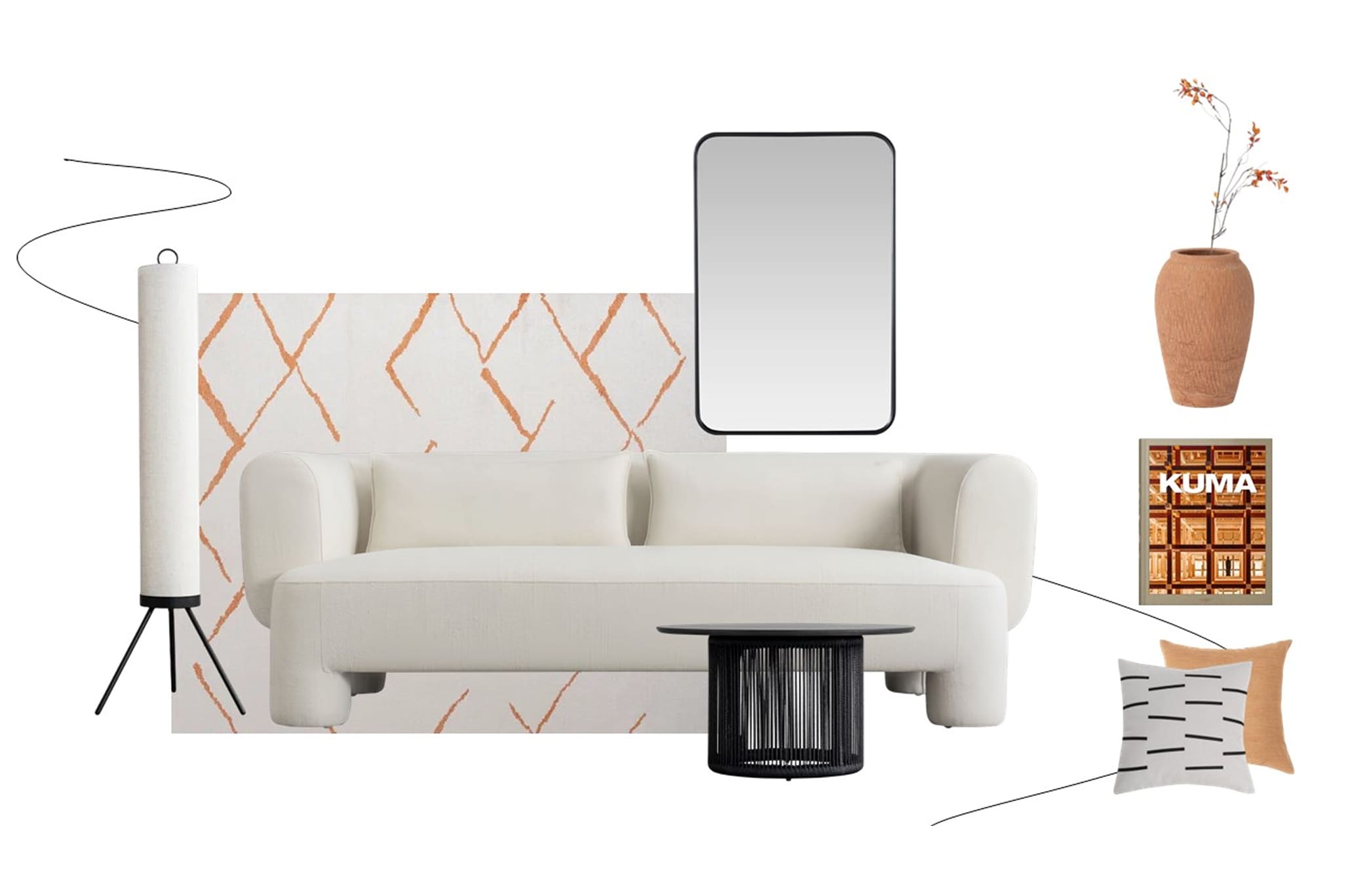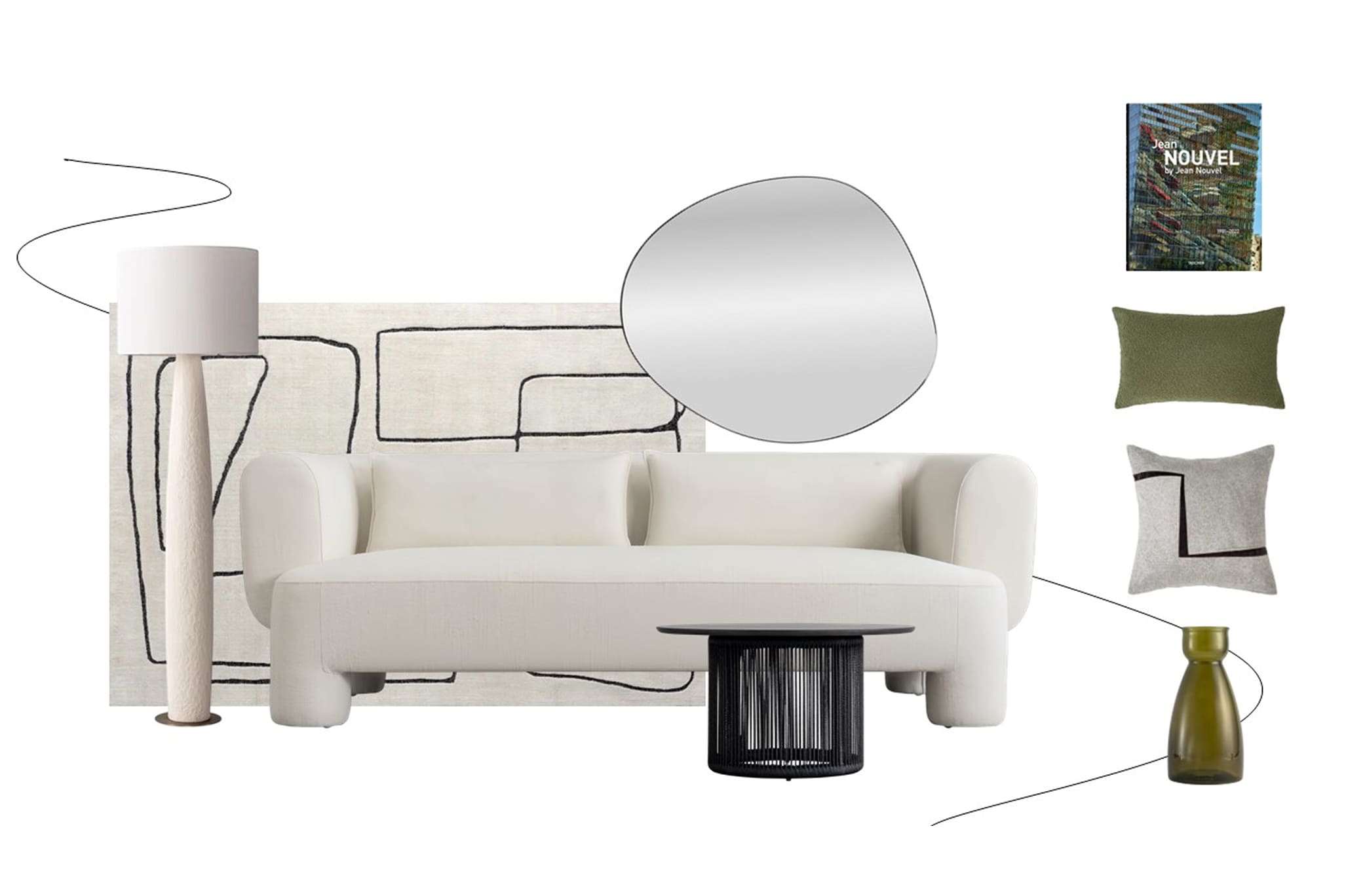 В гостиной она проявляется через чистоту линий, дыхание пространства и безупречность деталей: белый ковёр с рисунком, словно намеченным кистью, ветка в вазе — совершенный изгиб. Свет торшера, что повторяет форму бумажного фонаря, отбрасывает тающие тени. Рождается место, где мысль становится ясной, а внутренний порядок — естественным, как ритм строк в хокку.