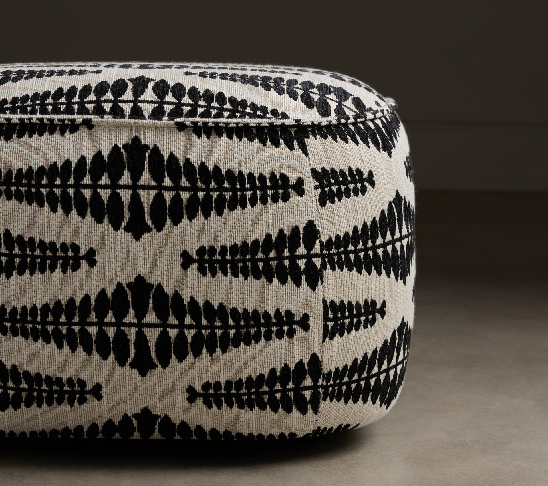 Обновлённый Этвуд определяет обивка. Фирменная ткань Dantone Home Sarment col. Noir с контрастным флоральным мотивом отвечает за характер изделия. Пышный объём служит идеальной основой для сложного орнамента, превращая пуф в ключевой компонент интерьера. Наличие этой модели на складе позволяет получить эффектный акцент без ожидания.