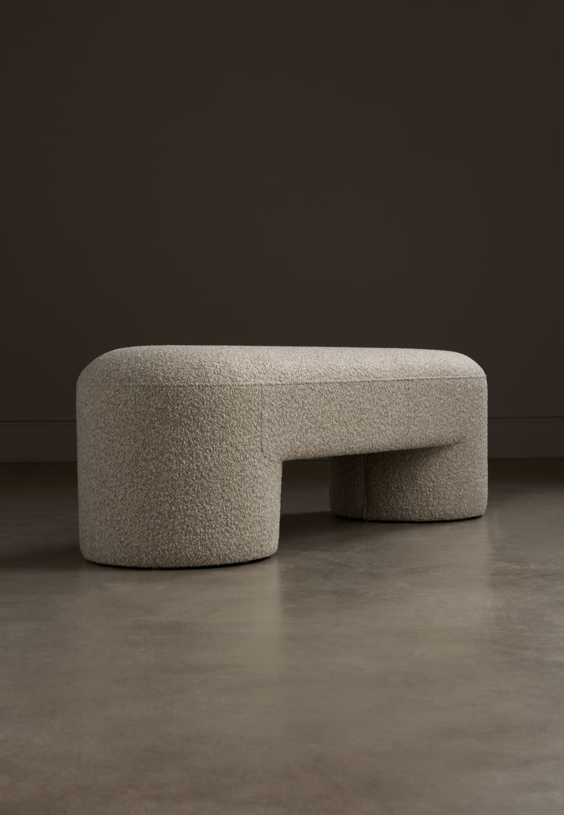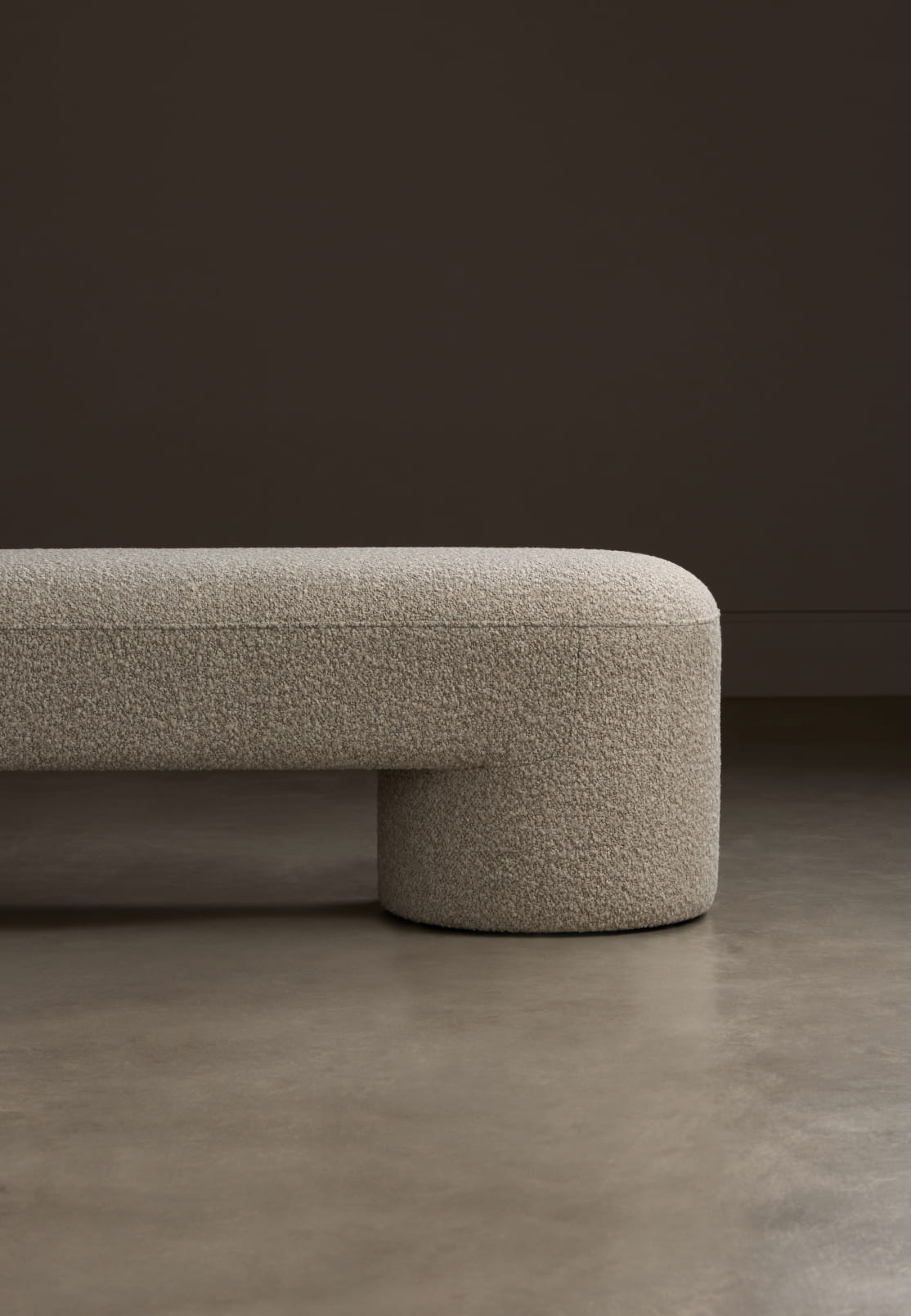Оттоманка Ontario построена на контрасте мягкого объёма и устойчивых цилиндрических ножек. Её плавные, обтекаемые очертания, лишённые острых углов, формируют ощущение спокойствия. Благодаря сдержанной эстетике, она органично вписывается в спальни, выполняя функцию приставного элемента. Вариант в фактурной ткани с графичным узором подчёркивает её стилистическую универсальность.