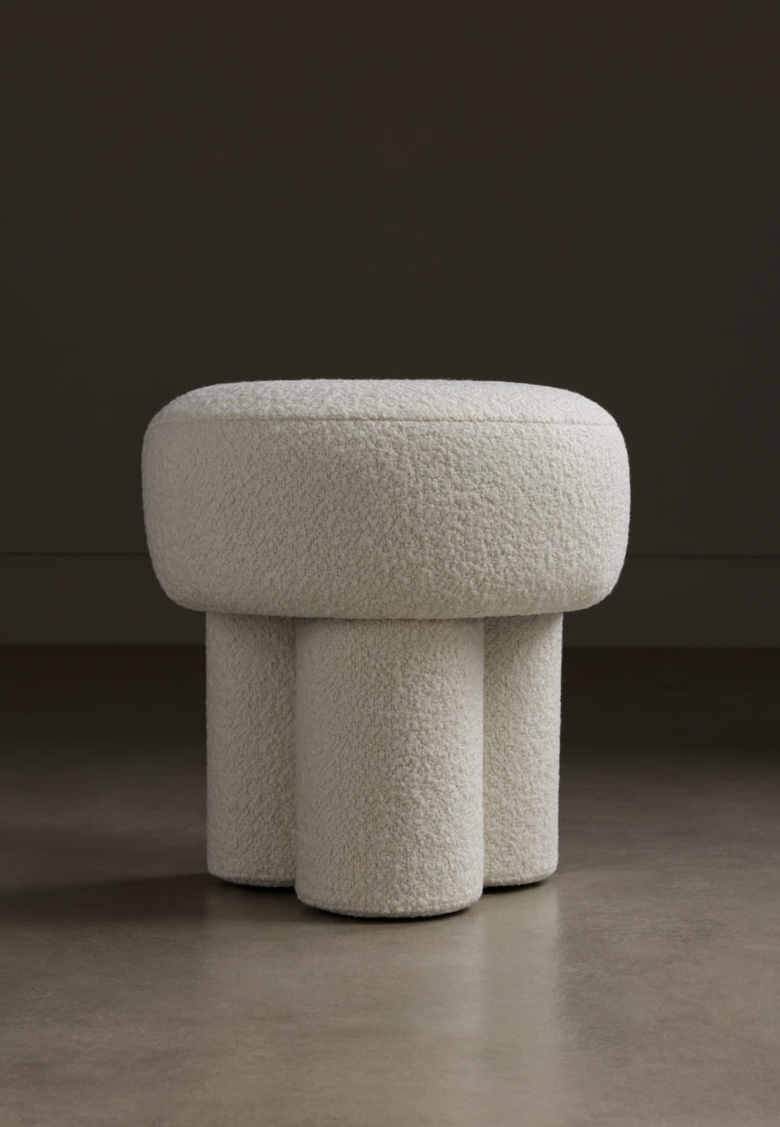 Пуф Tory демонстрирует динамичное соотношение объёма и опоры. Его упругое сиденье возвышается над группой цилиндрических ножек — необычное конструктивное решение для настолько компактного объекта. Эта игра пропорций задаёт выразительный визуальный ритм. Скульптурность акцентируют яркий шафрановый оттенок или мягкий пломбирный.