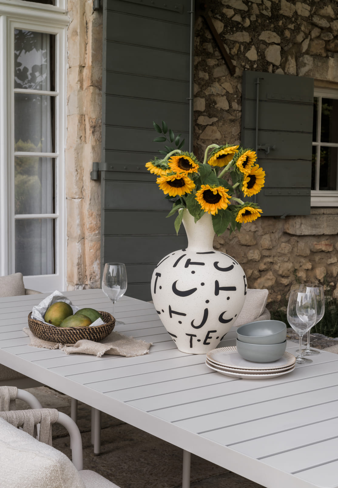 Линейка, разработанная дизайнером Лорой Грезар под художественным руководством Джеймса Паттерсона, с самого начала была образцом, редким для уличной мебели: чёткие линии без излишней жёсткости, эргономика, не жертвующая эстетикой. Изначальное цветовое решение — насыщенный, глубокий зелёный — идеально отвечало идее природной органики, поддерживая ощущение пышного сада круглый год. Оттенок песчаной дымки раскрывает ту же архитектурную идею с совершенно иной стороны.