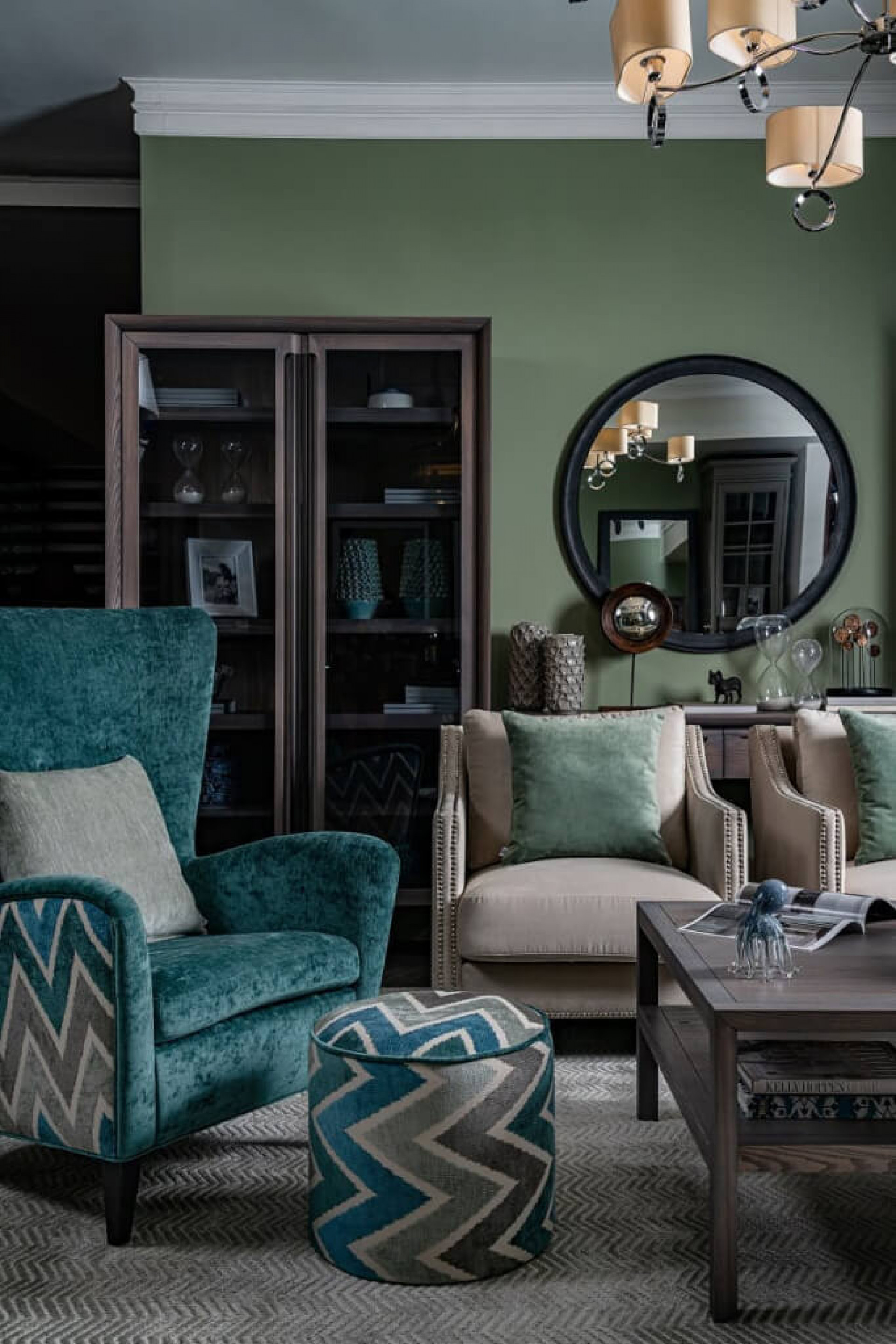 Цвет стен: Sanderson Amsterdam Green + Little Greene Shirting 129