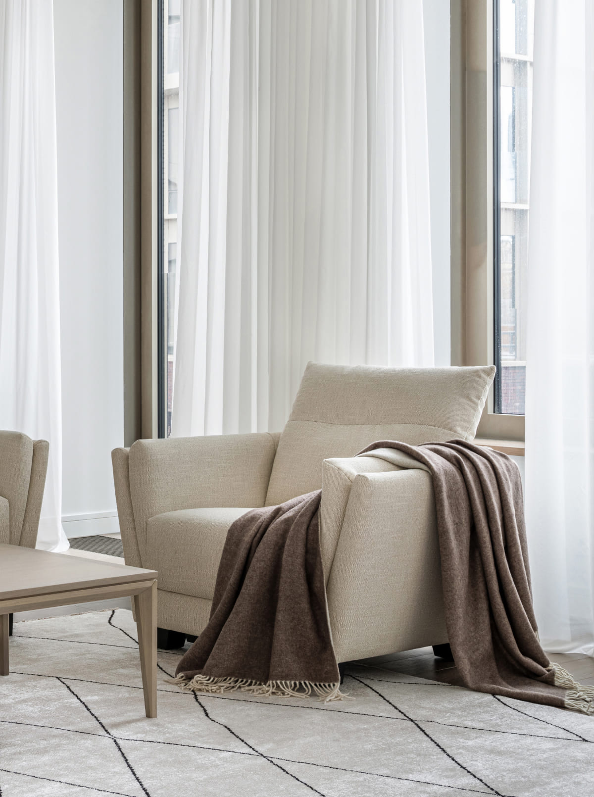 Como создано, чтобы дарить эмоции. Его итальянский дизайн, вдохновлённый озером Комо, покоряет с первого взгляда и остаётся в сердце навсегда. Богатая палитра обивки позволяет играть с текстурами, делая кресло не просто предметом мебели, а выразительным акцентом вашего пространства. Благодаря окутывающей форме, высокой спинке и двойным подлокотникам модель очень эргономична.
