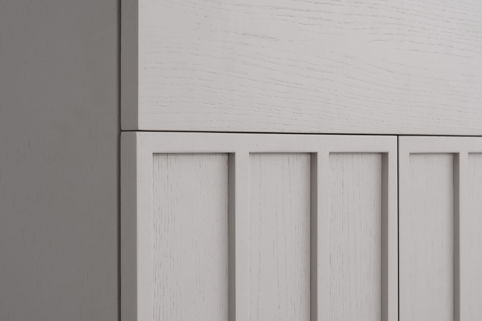 Идеален для компактной входной группы, где он сразу задаёт тон всему интерьеру. За фасадом с ритмичным рисунком — продуманная система хранения для зонтов, сумок и других повседневных мелочей, требующих порядка.