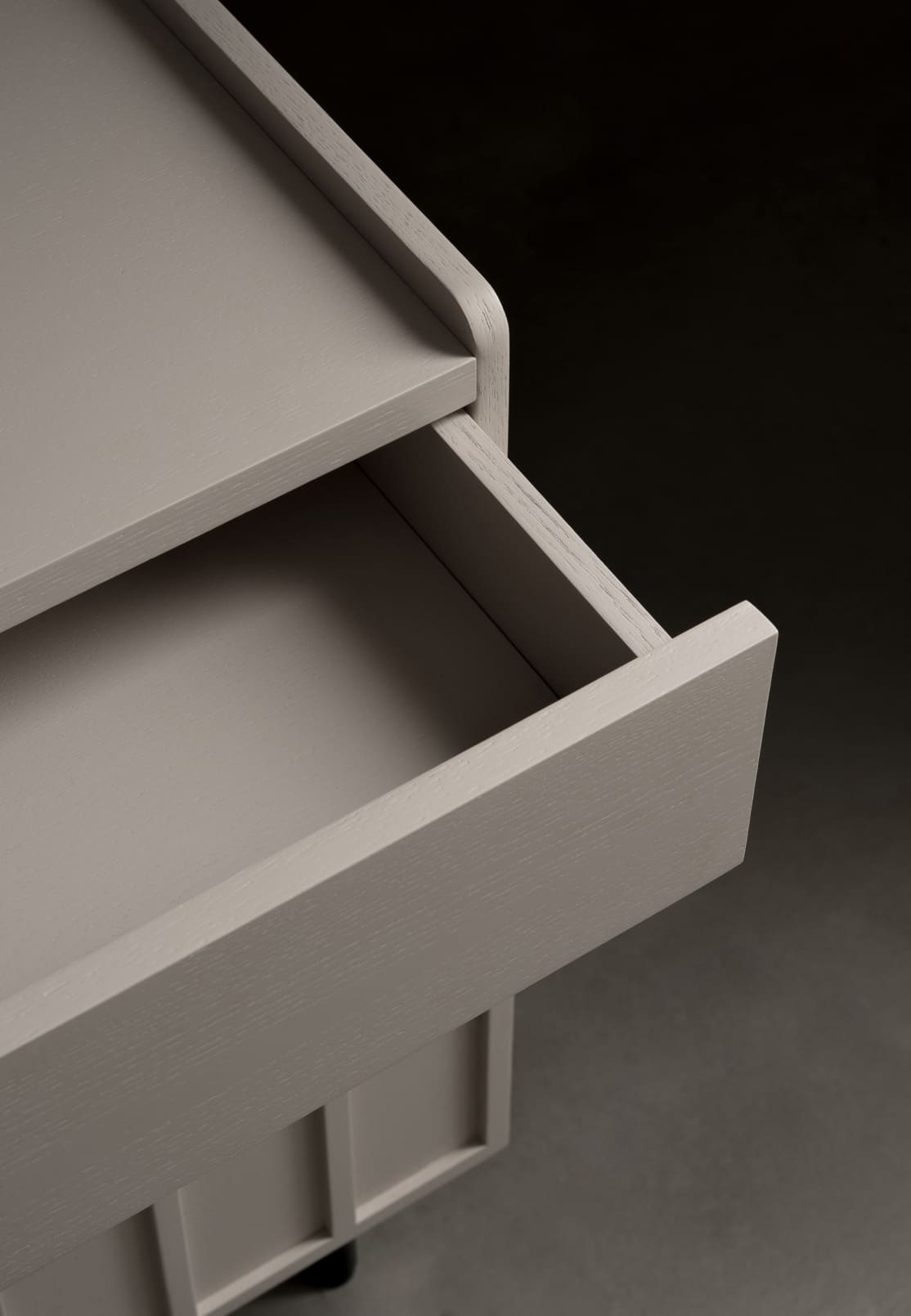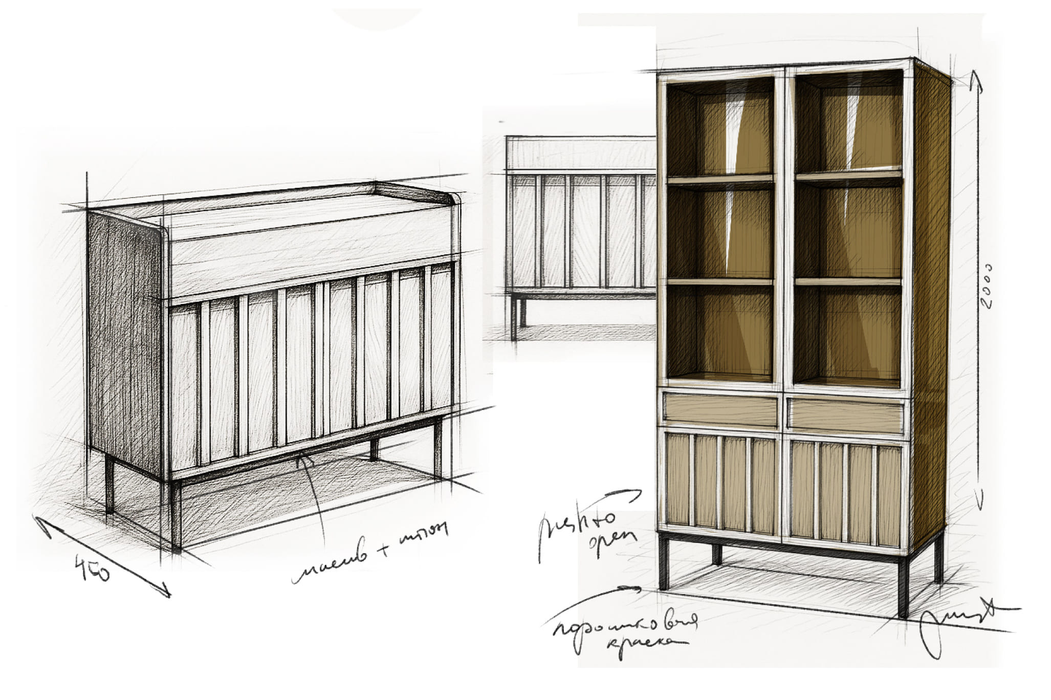 Box не имитирует архитектуру — она мыслится как архитектура в масштабе предмета: фасад становится дверцей, несущая балка — ножкой, а пространство — внутренним объёмом мебели».
