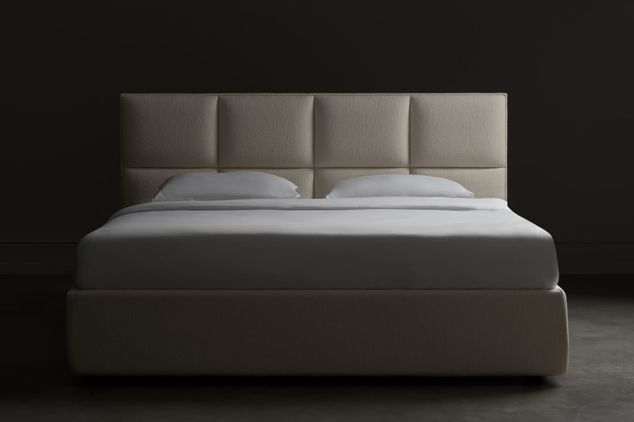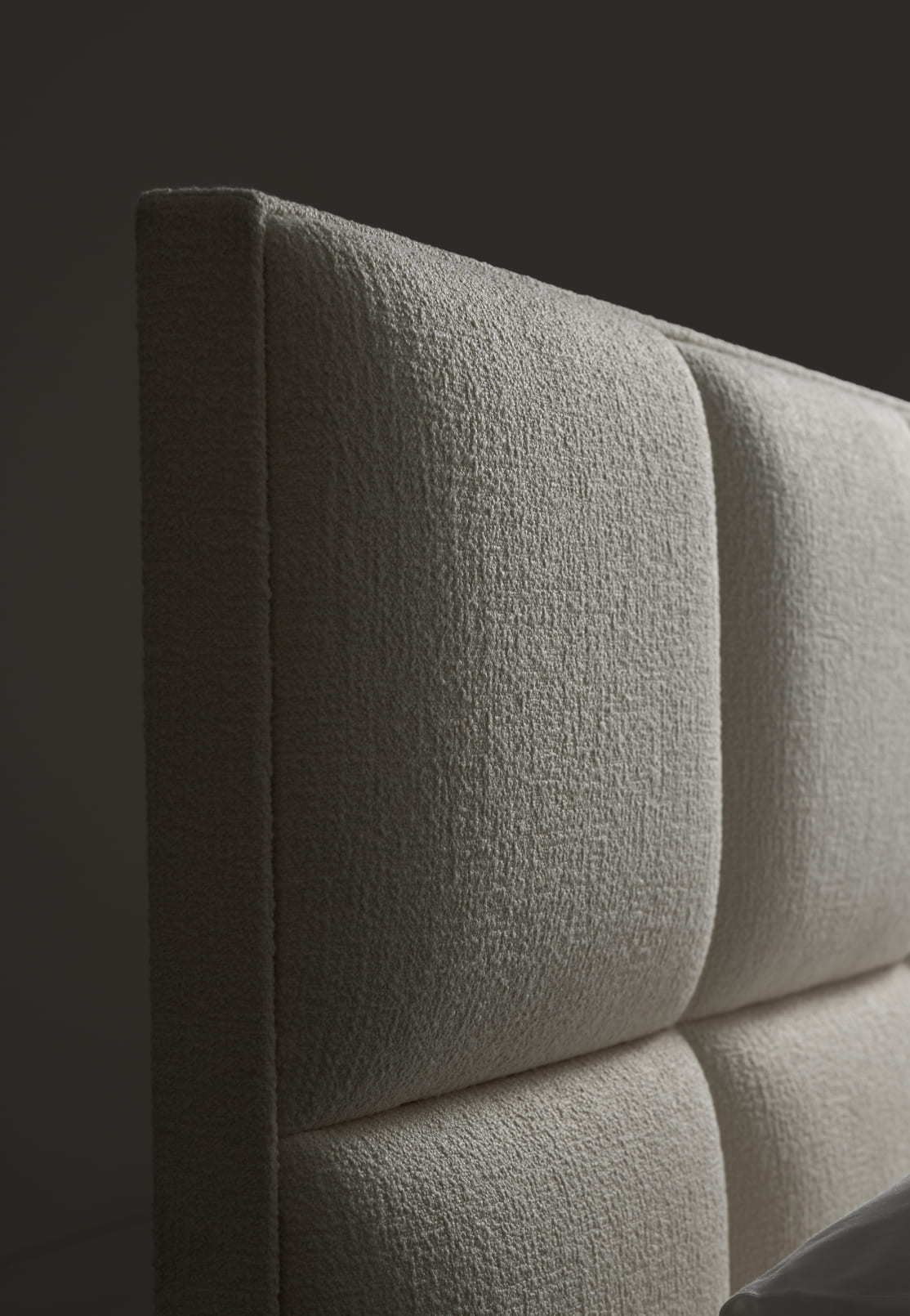 Quadra — кровать для ценителей чистого, сбалансированного дизайна в духе soft minimalism, где каждая деталь продумана, а бескомпромиссное удобство уравновешивает чёткость линий.