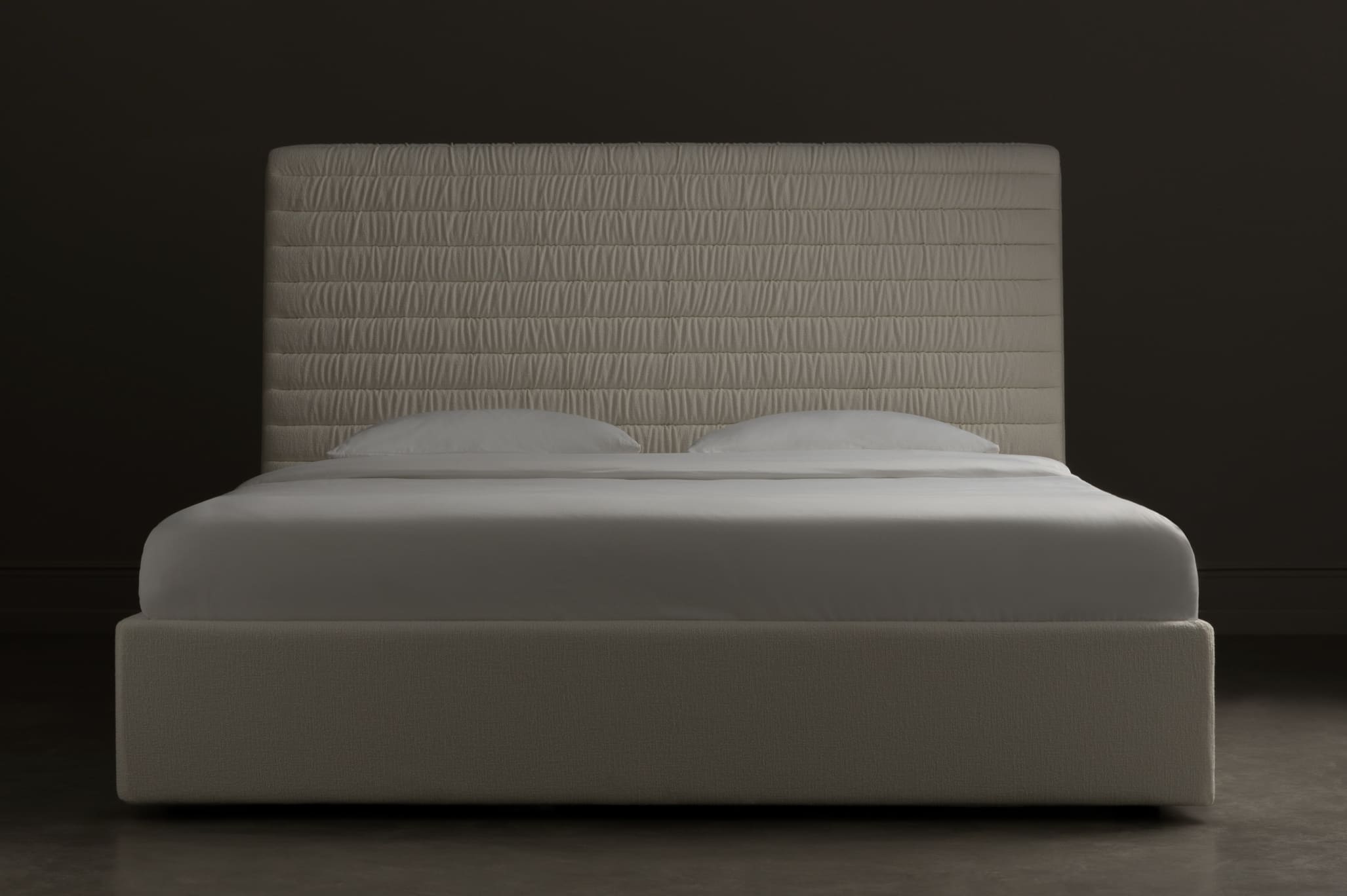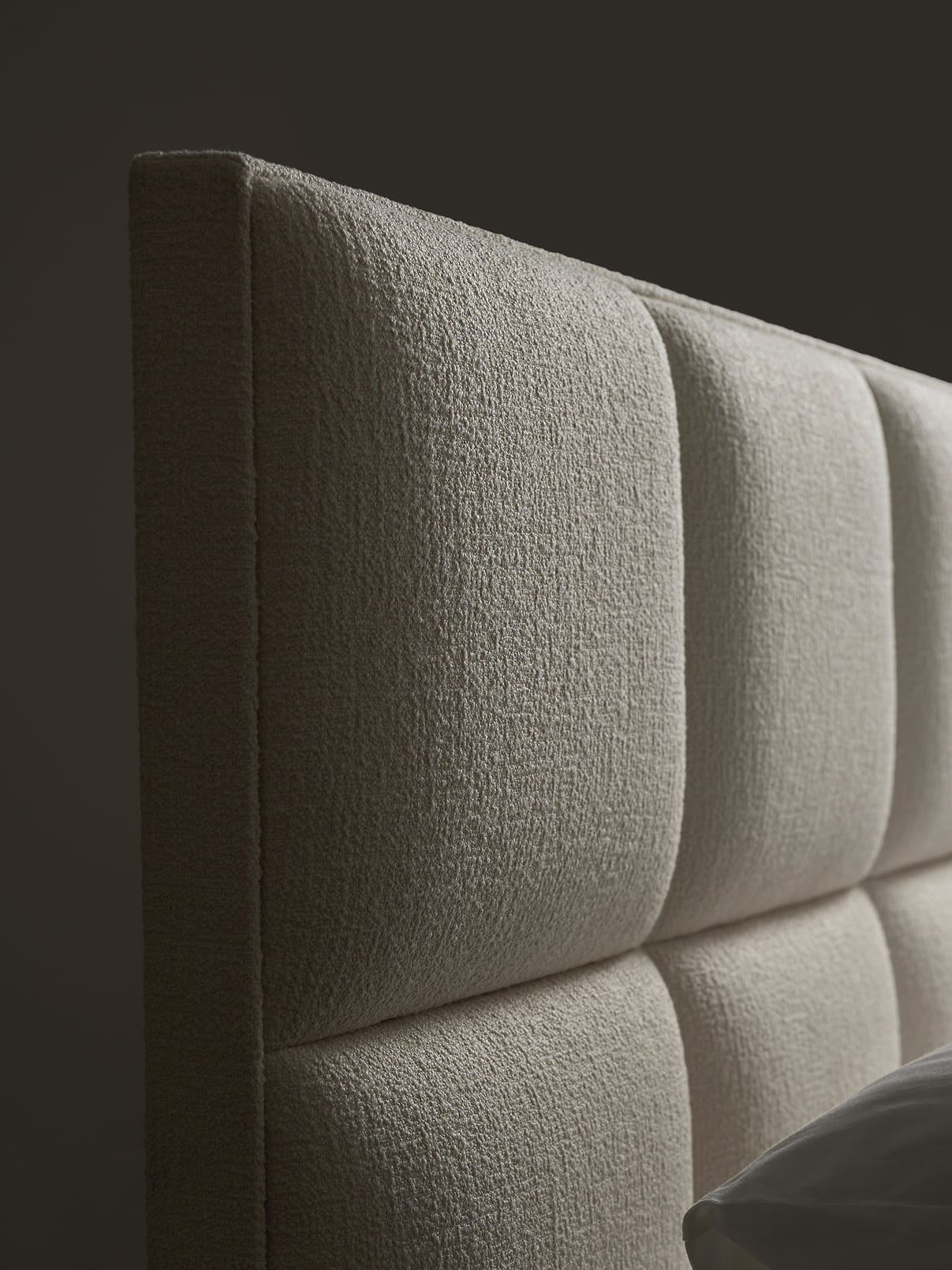 Кровать Quadra безупречно сочетает в себе чёткость архитектурной формы и тактильную мягкость. Её лаконичный дизайн построен на идеальных пропорциях и графичном ритме аккуратных квадратов, образующих изголовье. Каждый объёмный модуль имеет округлые края и плотную, приятную обивку.