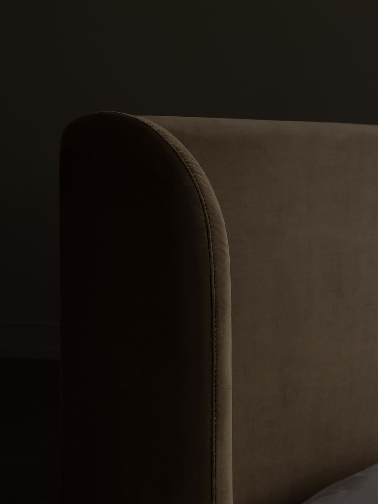 Волнообразное изголовье дало имя модели (от итал. onda — волна). Его текучесть вместе с округлым основанием формирует цельный, спокойный силуэт.