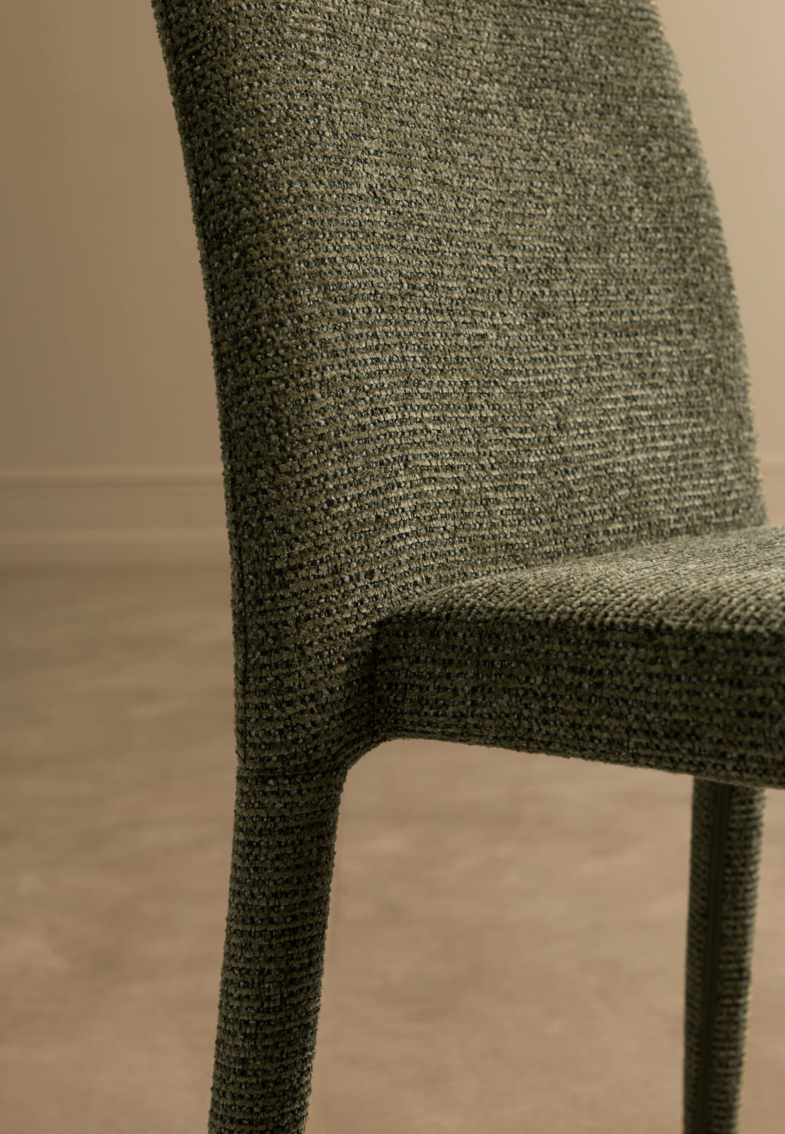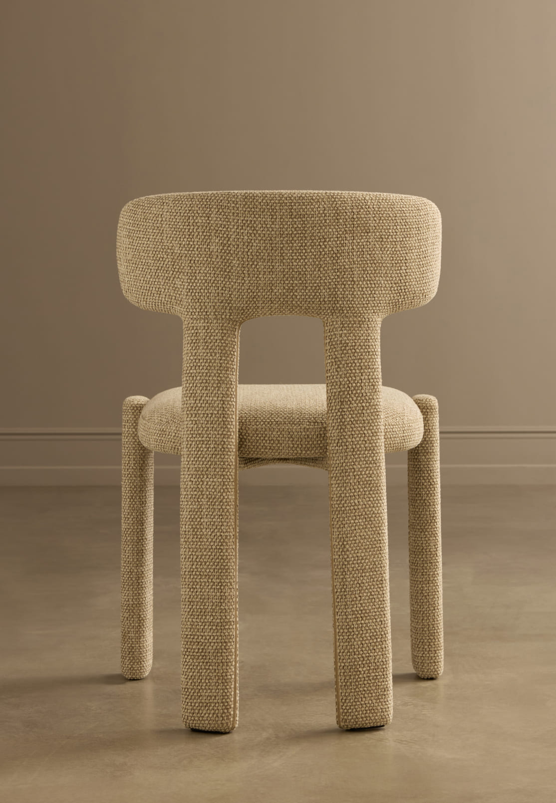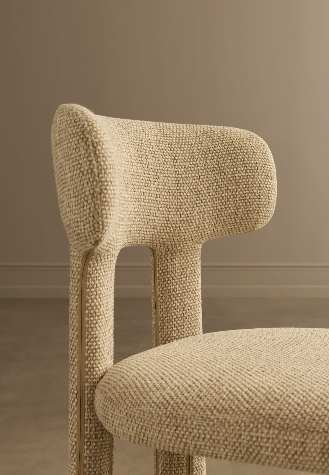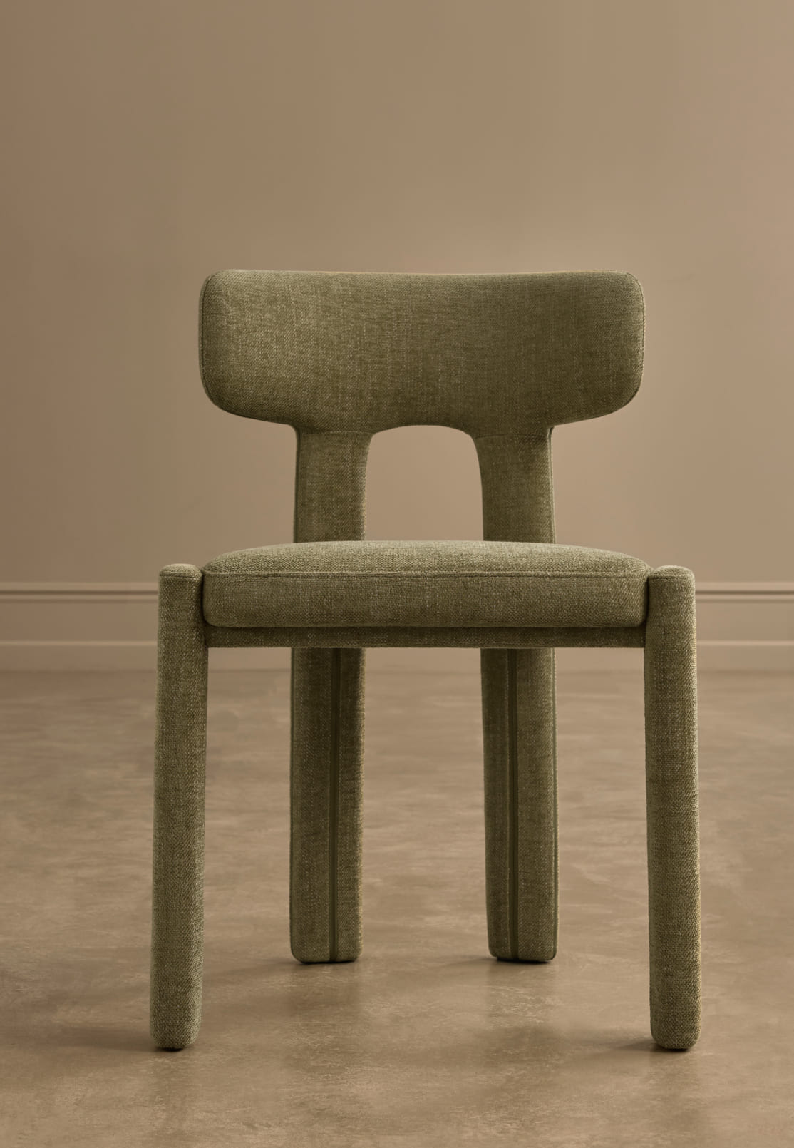 Благодаря тотальной тканевой обивке и округлым линиям исчезает жёсткость, присущая традиционным деревянным стульям. Pierce — это пример грамотной трансформации: тактильная теплота материалов делает устоявшийся дизайн-код гостеприимнее и человечнее, не нарушая чёткости и изящества пропорций.