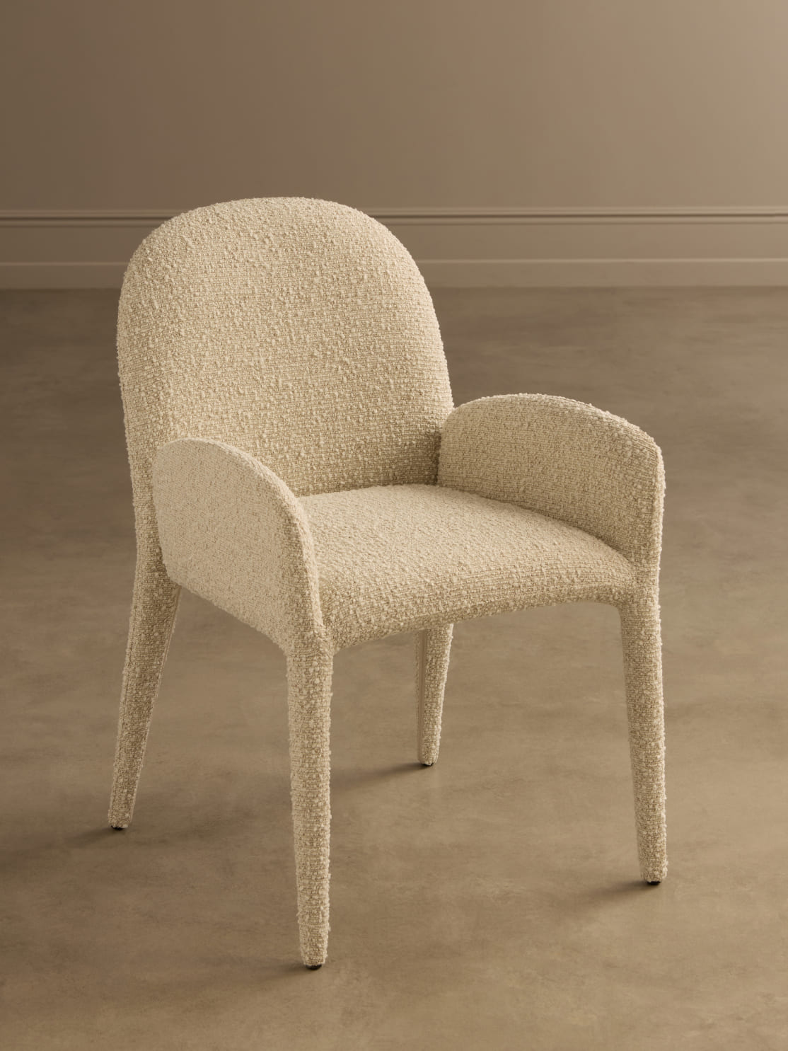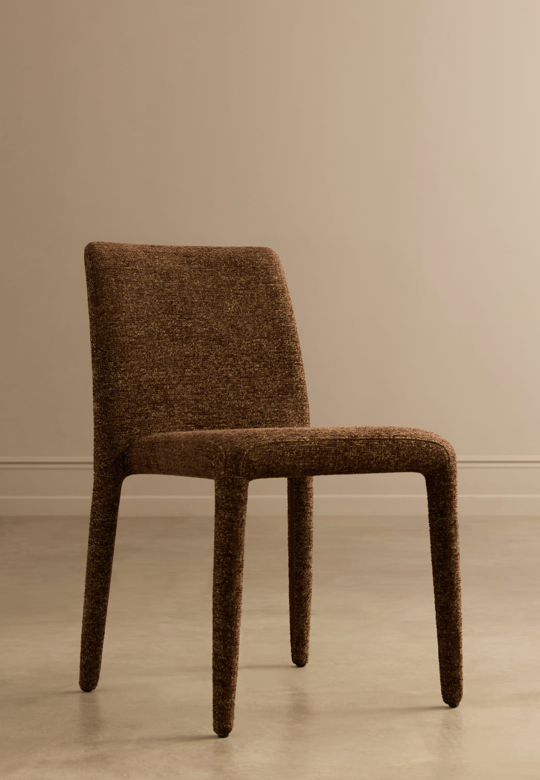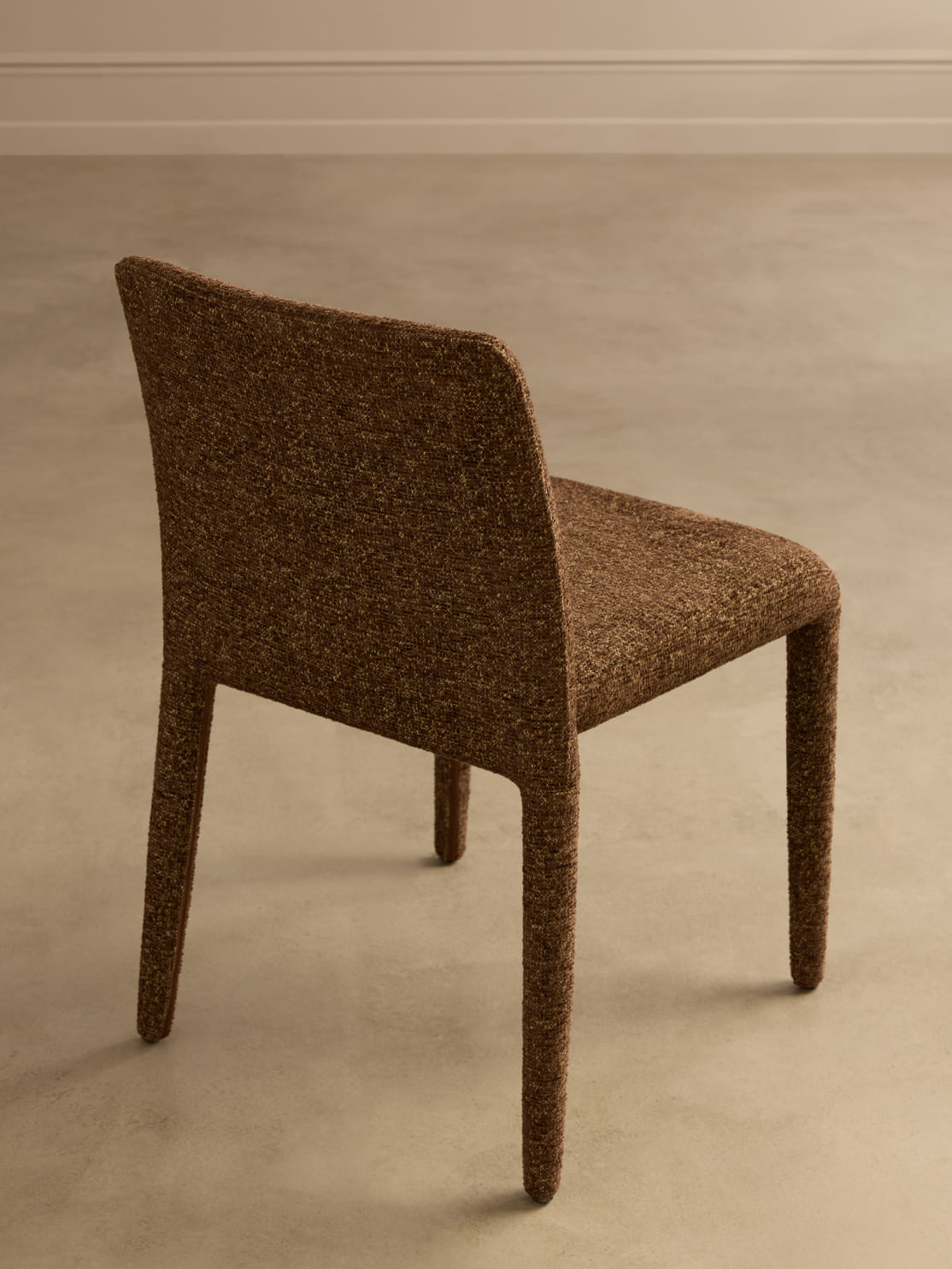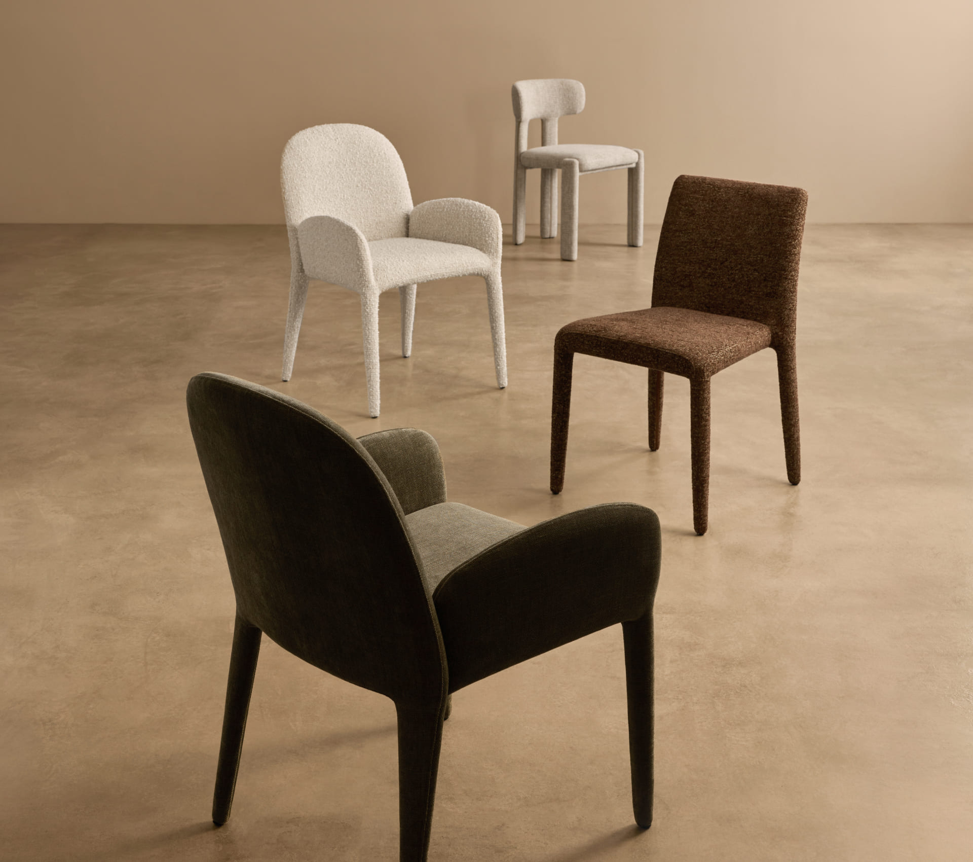 Благодаря тотальной тканевой обивке и округлым линиям исчезает жёсткость, присущая традиционным деревянным стульям. Pierce — это пример грамотной трансформации: тактильная теплота материалов делает устоявшийся дизайн-код гостеприимнее и человечнее, не нарушая чёткости и изящества пропорций.