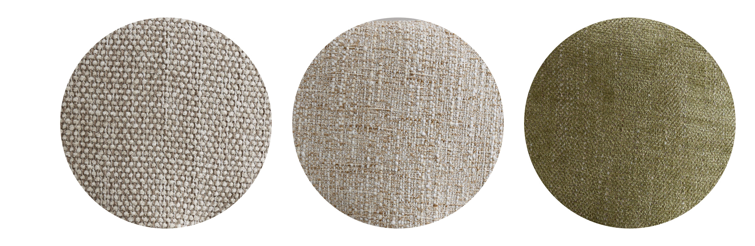 Haven представлен в трёх вариантах фактурной обивки. COCO 112 отличается тонким ритмичным узором. FIELD 130 — это нежный, успокаивающий беж. Глубокий приглушённо-оливковый HARMONY 351 способен стать выразительным цветовым акцентом.