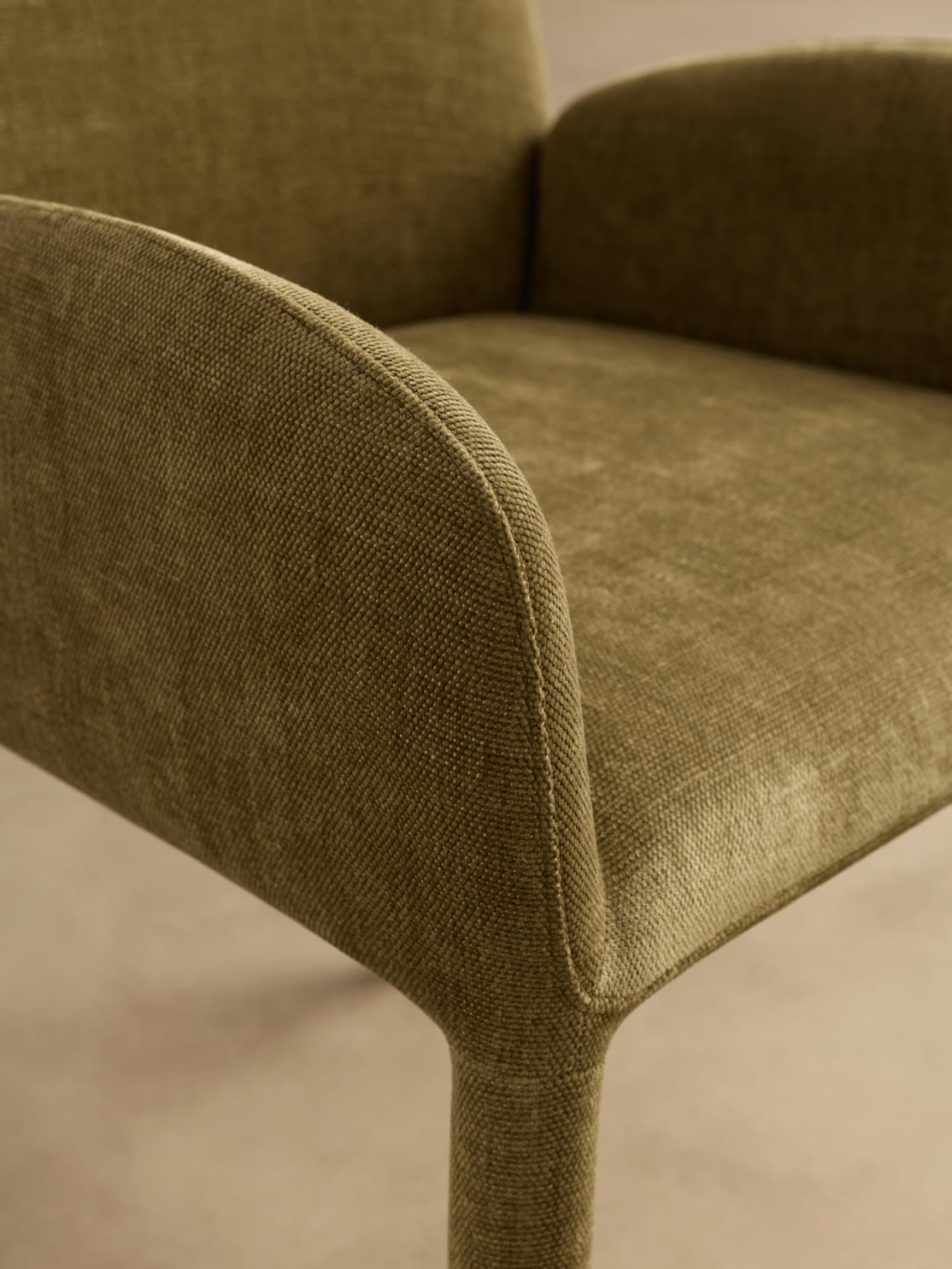 Лейтмотив дизайна — аркообразные структуры, транслирующие ощущение защищённости. Округлая спинка находит отражение в плавных линиях подлокотников, которые непрерывно продолжаются в передние ножки. Даже нижний край сиденья слегка скруглён, что окончательно устраняет геометрическую резкость, формируя идеально уютное, коконоподобное пространство для отдыха.