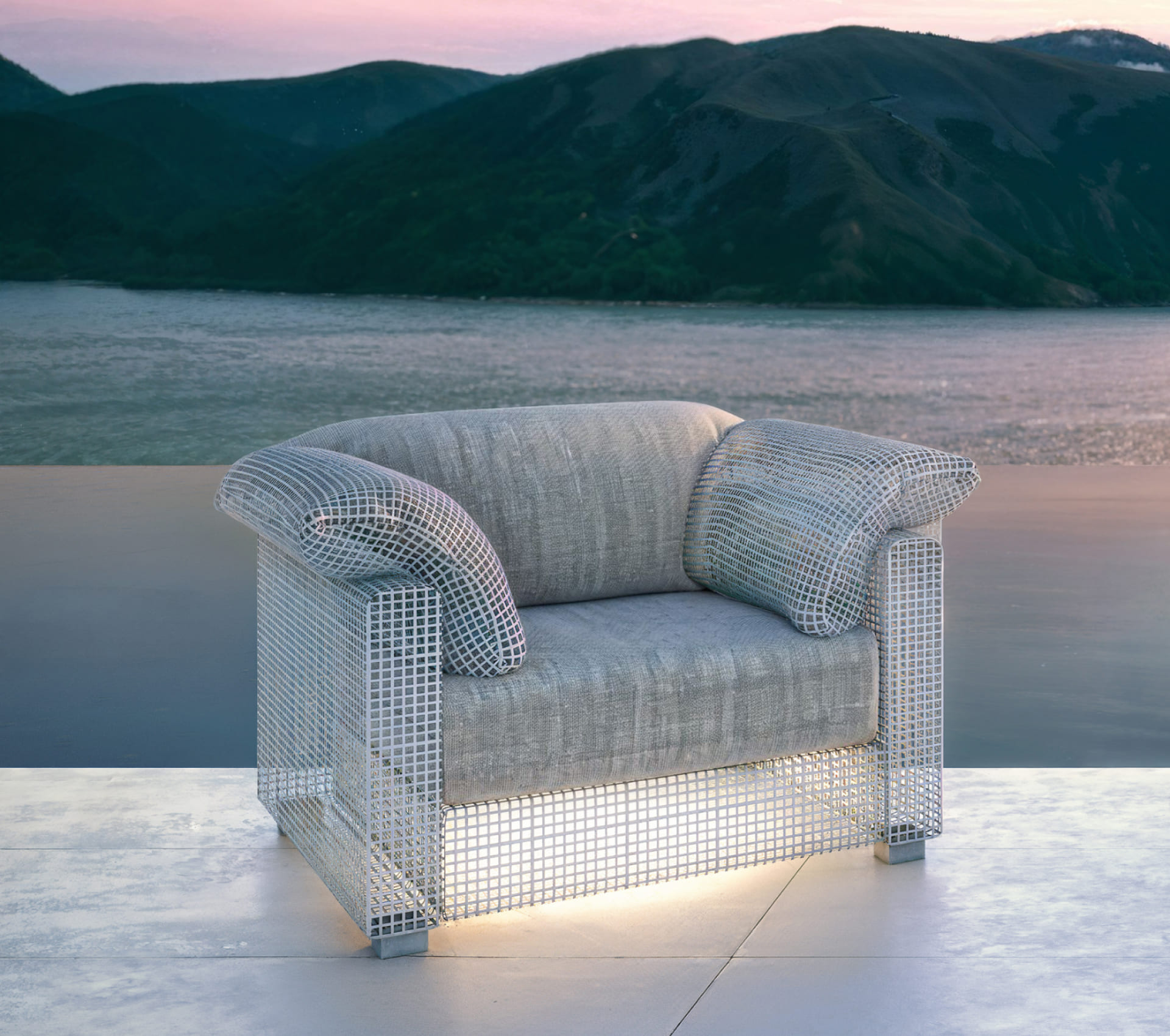 Проект-победитель воплощает идею гармонии с природой. Ключевой элемент дизайна — металлическая сетчатая опора, придающая креслу невесомость и сохраняющая узнаваемый силуэт модели. Обивка из серой ткани уравновешивает композицию, добавляя мягкости и «заземлённости». «Это кресло предназначено для тенистых террас, где бы оно пробуждало чувства, словно глоток прохладной воды в жаркий день, даря ощущение чистоты и спокойствия», — отмечает автор проекта Алена Колесникова.