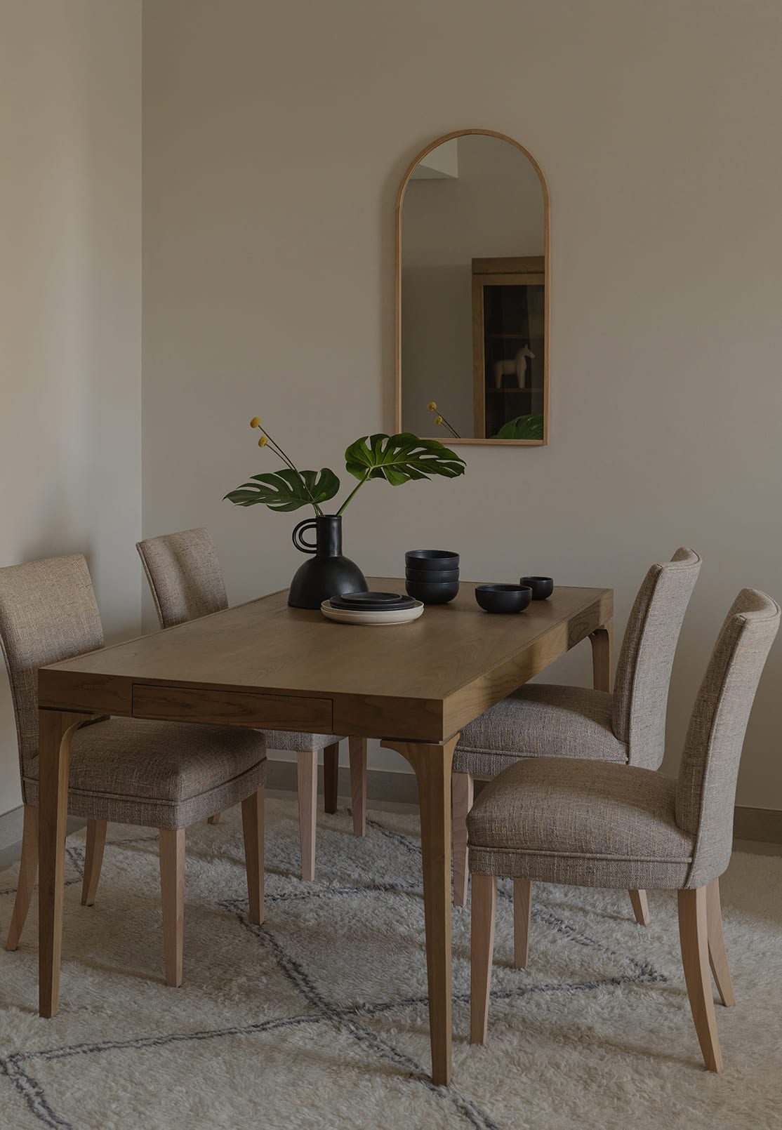 Светлые тона наполняют интерьер ощущением чистоты и простора, а благодаря мягкой фактуре стула Seam к нему добавляются тактильное тепло и уют. Этот союз эстетики и комфорта особенно ценен в обеденной зоне, где важны чувство защищённости и близости. Эргономичные размеры обеспечивают естественную посадку даже во время долгих застолий.