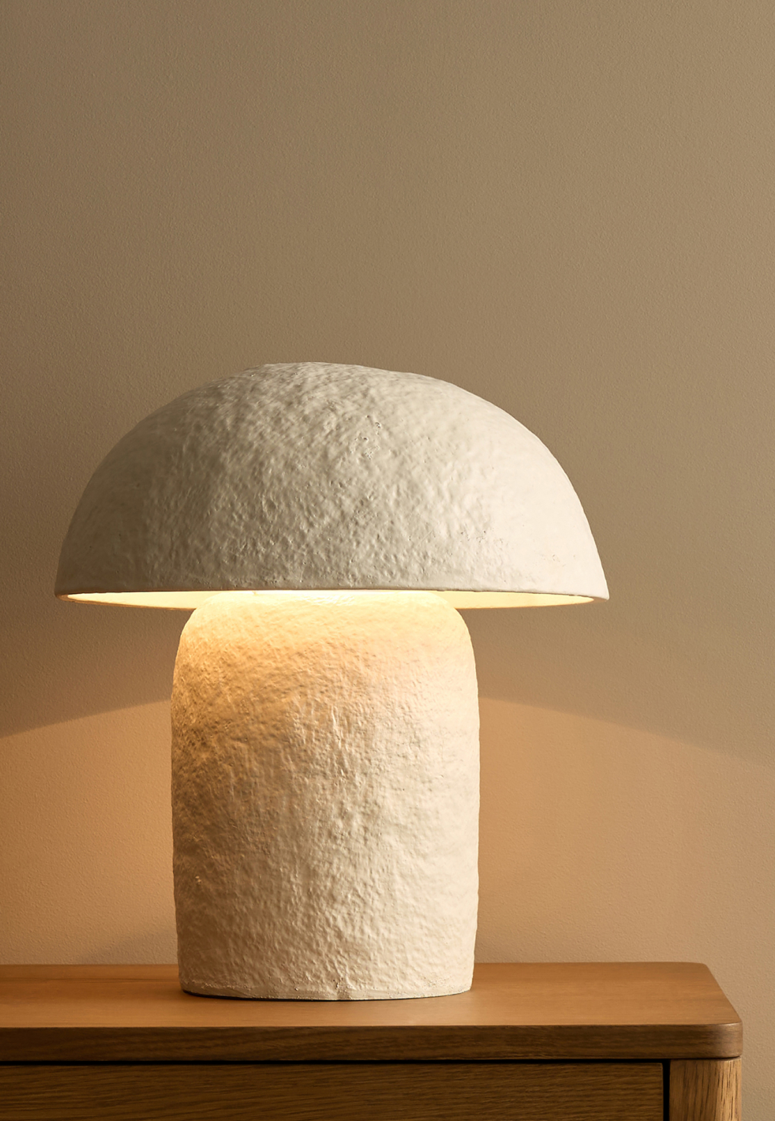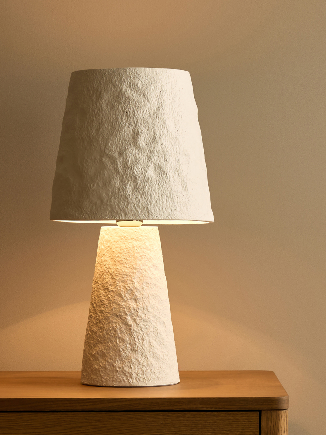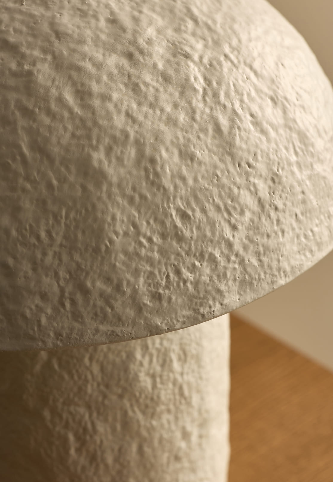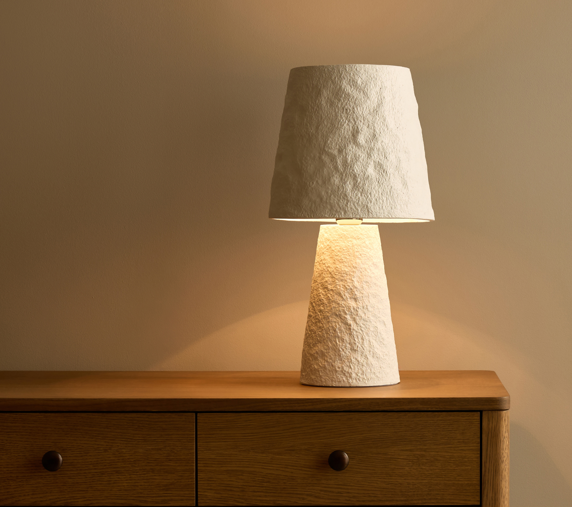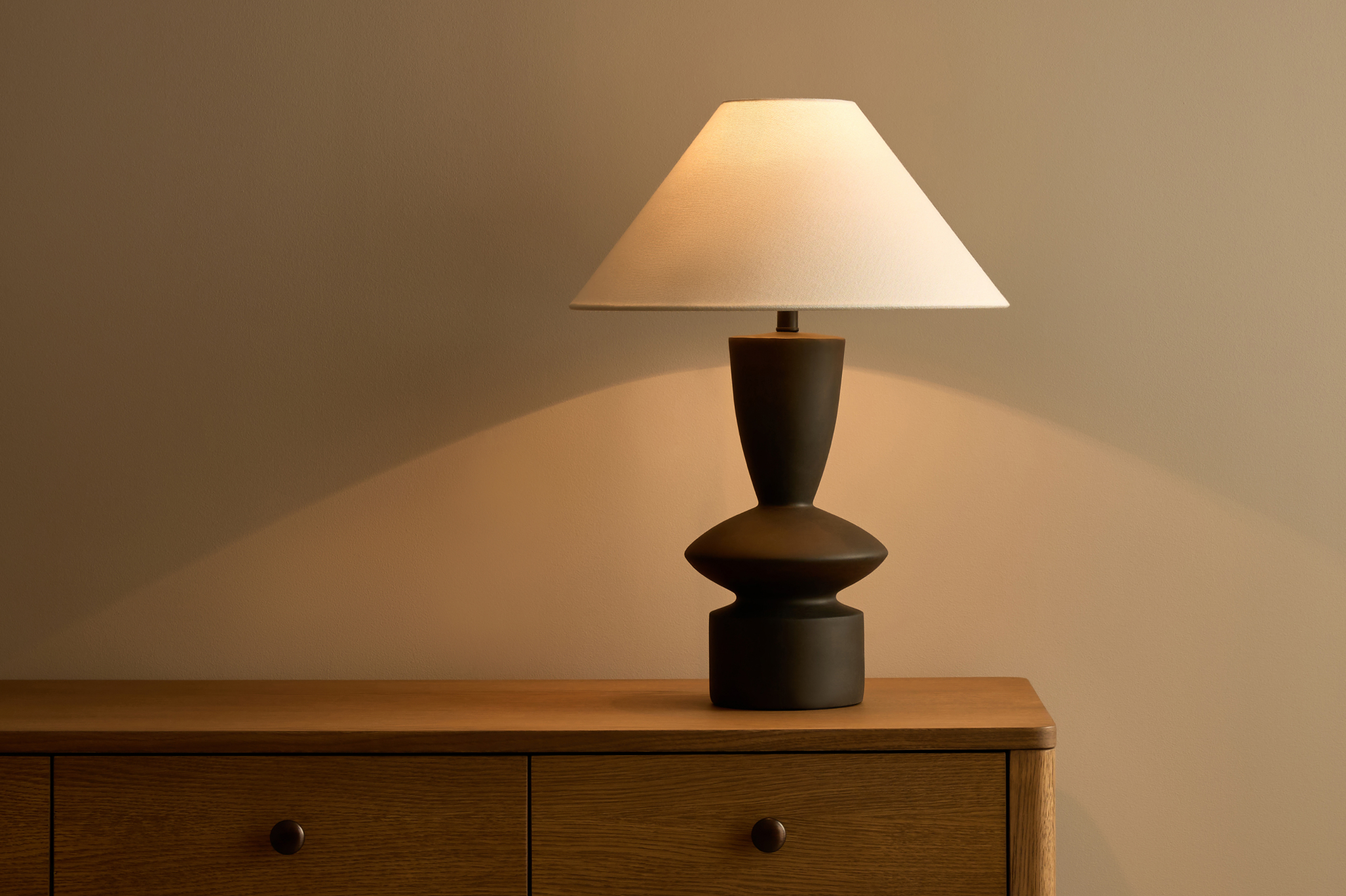 Например, настольная лампа Sena Beige — воплощение естественности. Её округлое основание, с зернистой, словно выветренной поверхностью керамики, похоже на тёплую горную породу. Этот мотив подхватывает тканевый абажур схожей, чуть более мягкой зернистости. Разные по своей сути материалы, объединённые цветом и созвучием текстур, рождают сложную гармонию, где граница между твёрдым и мягким, земным и рукотворным — размывается.