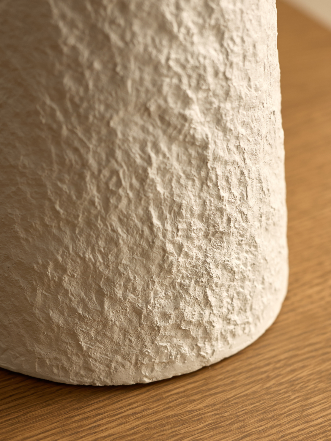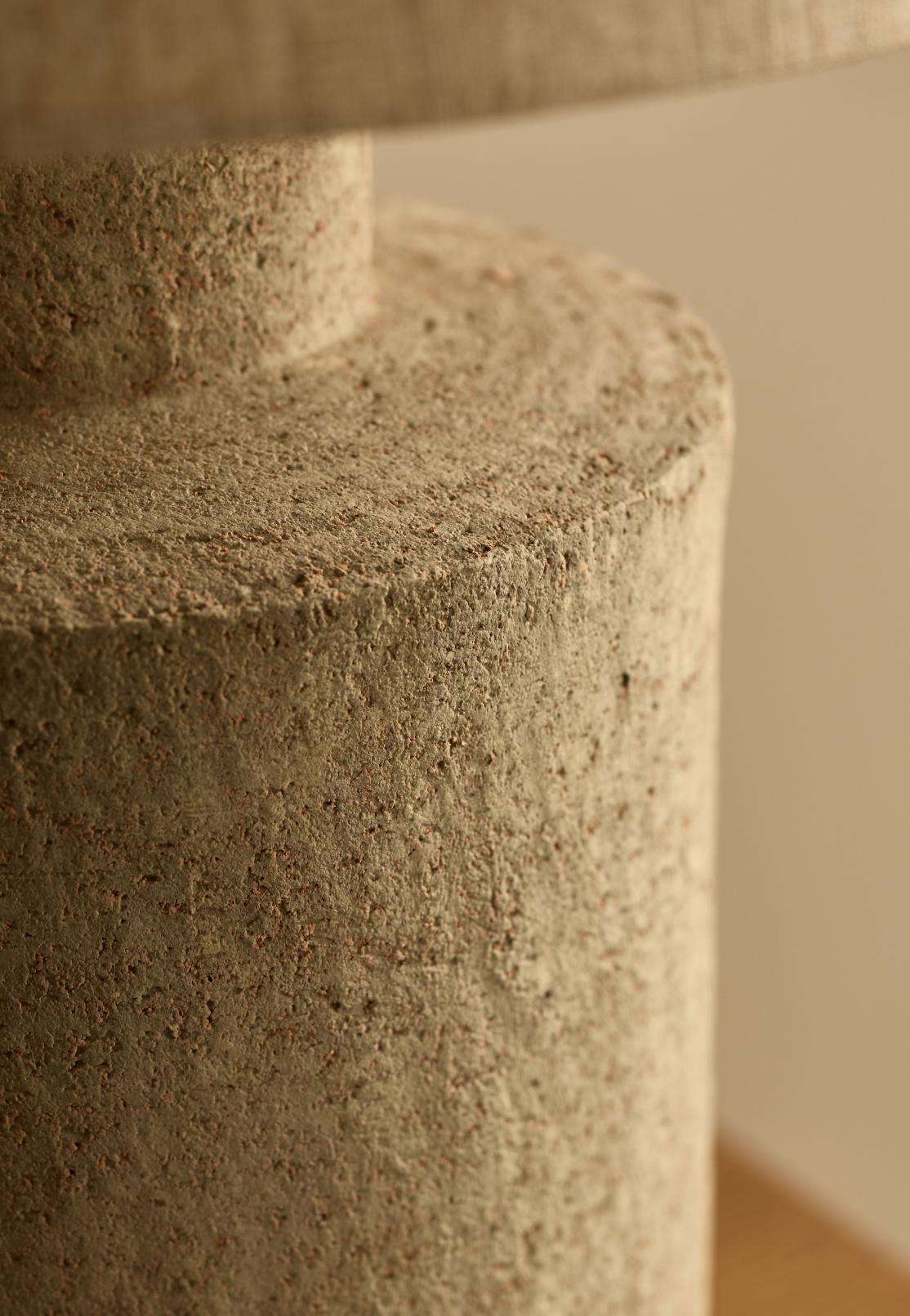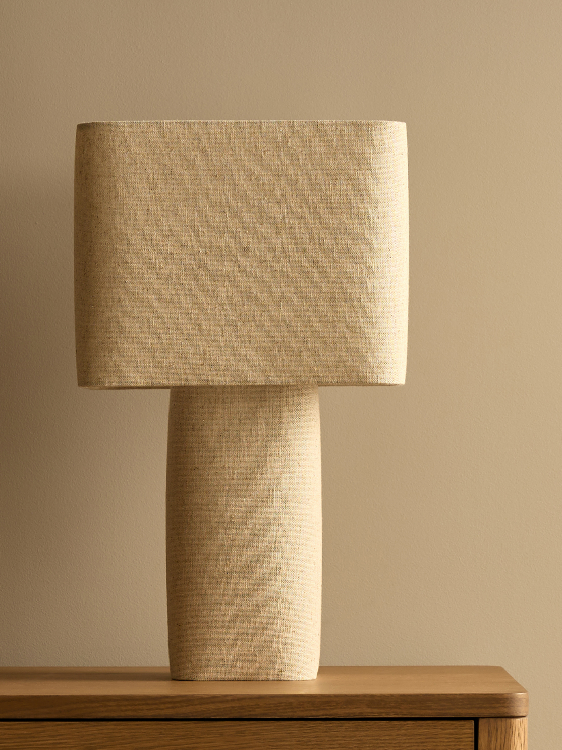 Mila целиком облачена в лён оттенка écru. Широкие цилиндры её основания и абажура притягивают взгляд и приглашают ощутить деликатную шероховатость ткани.