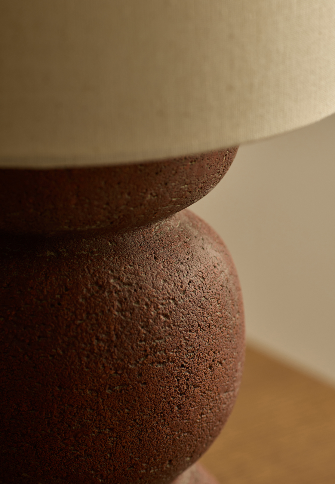 Soma отдаёт дань терракотовой палитре, но на языке современного дизайна. Скульптурное основание из файбергласа в глубоком оттенке доказывает, что именно силуэт и цвет образуют пластическую идентичность предмета.