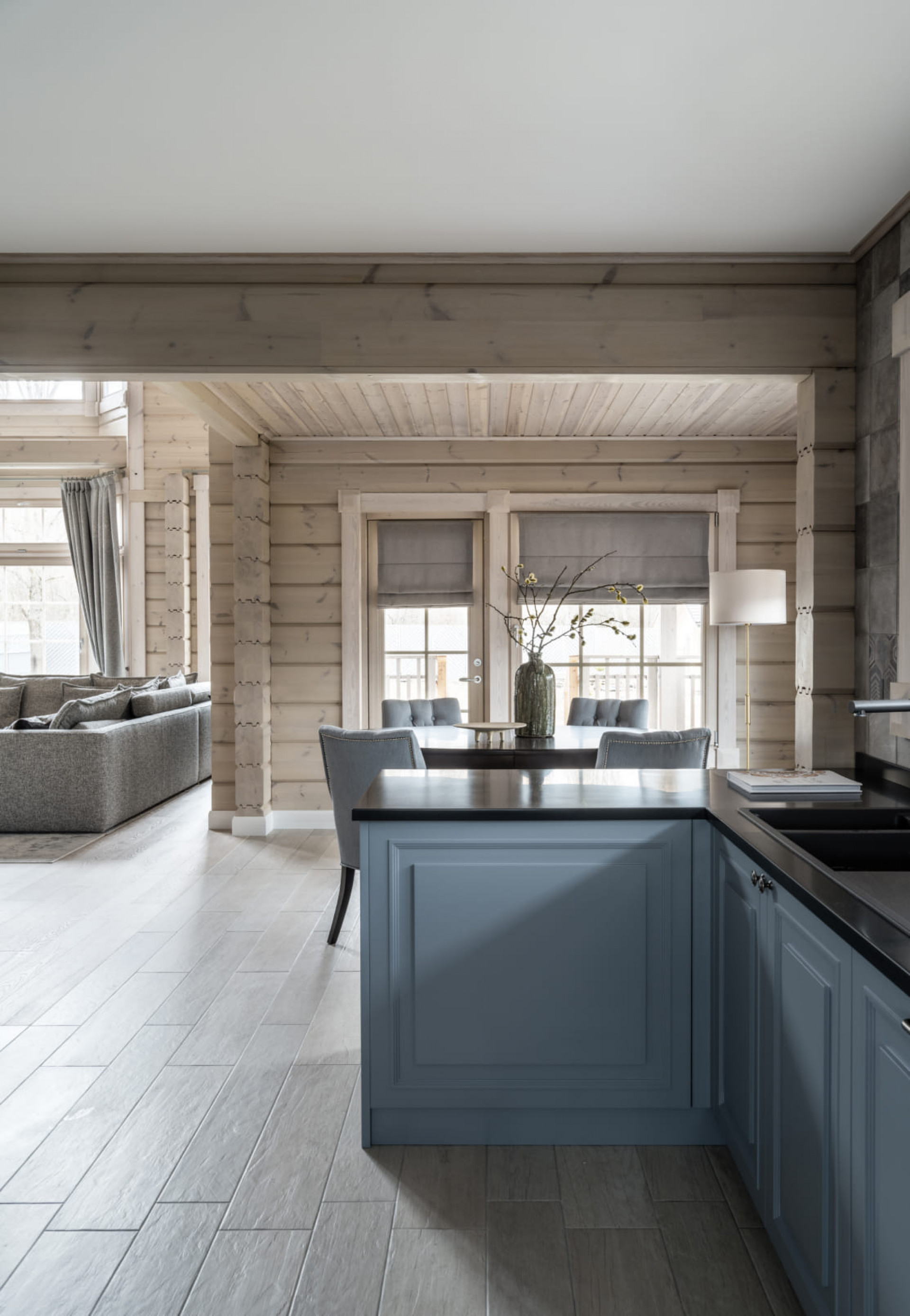 Архитектура объекта определила характер интерьера – максимум деревянных фактур, естественный свет из больших окон и тщательно продуманная планировка, в которой новой хозяйке ничего не захотелось менять.