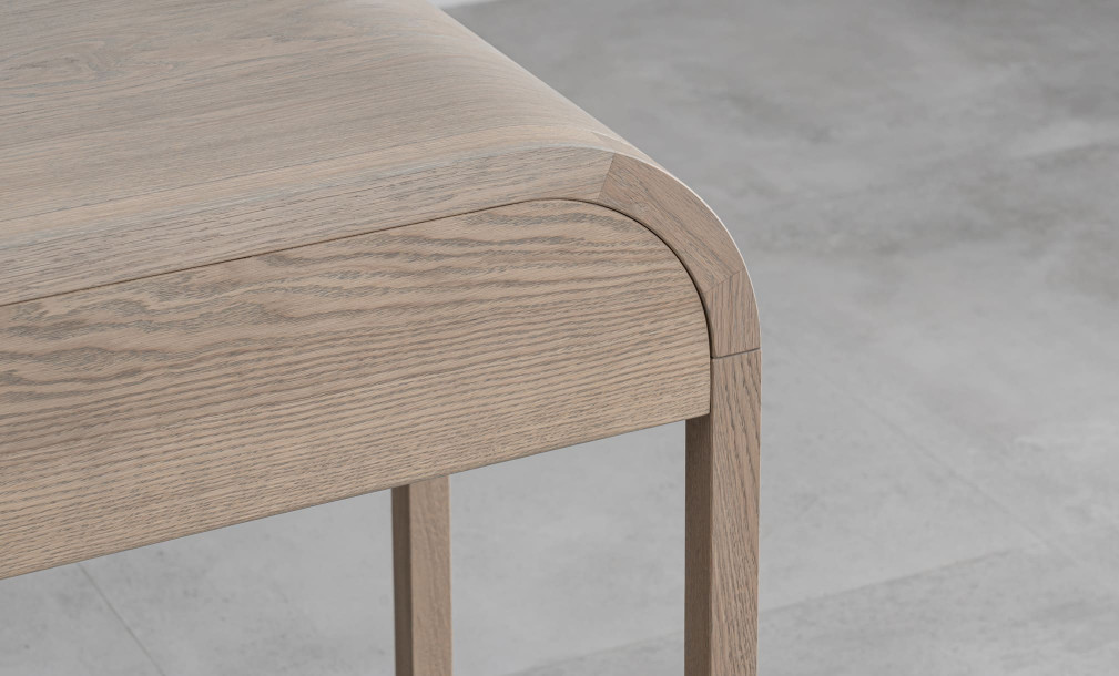 корпус - шпон дуба, МДФ, столешница - шпон дуба, МДФ, фасады - эмаль, МДФ, ящик - фанера тонированная, ножки - массив дуба