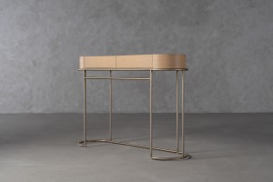 Консоль Трейн – находка для лаконичной современной прихожей в светлых тонах. Модель имеет два выдвижных ящика и два углубления по краям столешницы – в них удобно разместить важные мелочи, которые должны всегда быть под рукой. Несмотря на наличие вместительных мест для хранения консоль сохраняет визуальную лёгкость благодаря изящным металлическим ножкам в отделке латунь. Столешница выполнена из шпона в оттенке светлый дуб.