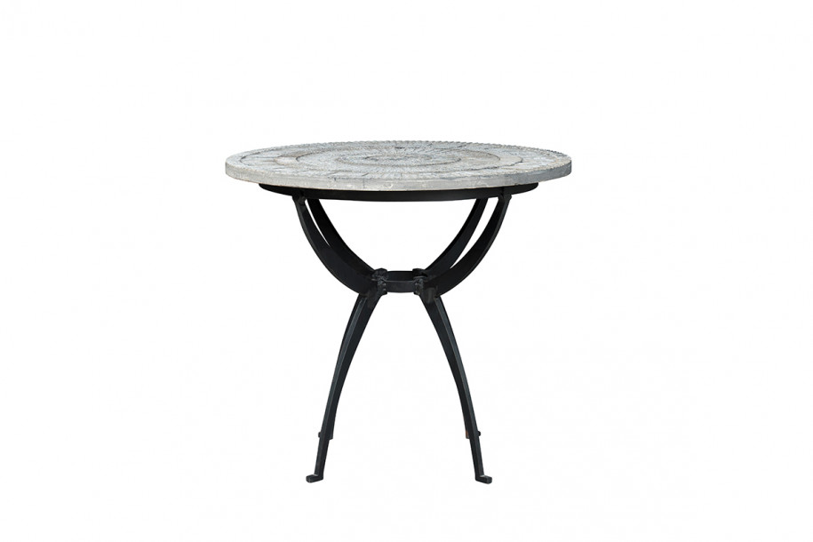 Придиванный столик Сансара понравится ценителям аутентичных предметов декора. Фактурная столешница из массива сосны в пепельном оттенке доставляет эстетическое и тактильное наслаждение. Резной узор в виде колеса сансары имеет глубокий философский смысл. Необычный столик с коваными металлическими ножками не только украсит гостиную, но и привнесёт в интерьер дух привлечений.