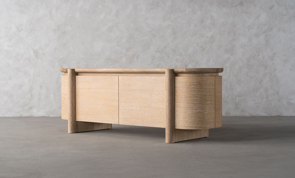 ТВ-тумба Pebble объединяет функциональность и уникальный дизайн, вдохновлённый естественными формами. Изготовленная из светлого дуба с выделяющимися белыми прожилками, она сообщает интерьеру ощущение природности и тепла. Закруглённые края и плавные формы тумбы напоминают о камнях, обработанных течением реки, наполняя окружающее пространство спокойствием и гармонией. Внутреннее пространство продумано для удобного хранения, а прочная конструкция обеспечивает долговечность. Эта тумба станет центральным элементом в гостиной, добавляя ей не только эстетическую, но и практическую ценность.